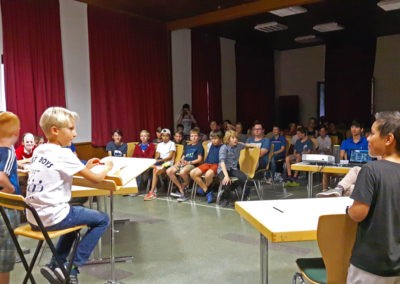 Der Abschluss des Abends bildete die Verteilung der Zimmernotengeschenke, sowie der in unzähligen Stunden gedichtete Freizeitsong. Wie immer ein echter Schlager, der die vergangenen Tage gewitzt zusammenfasst.