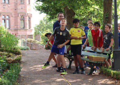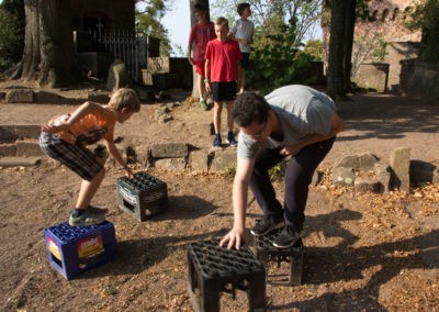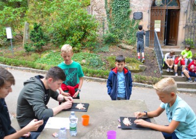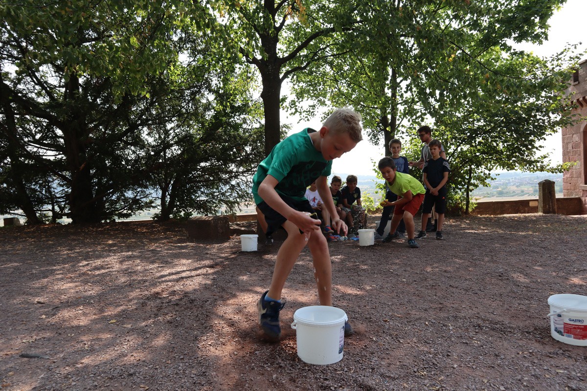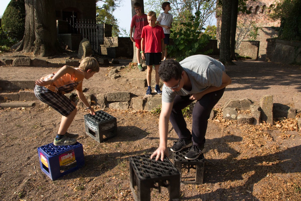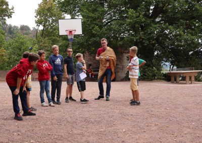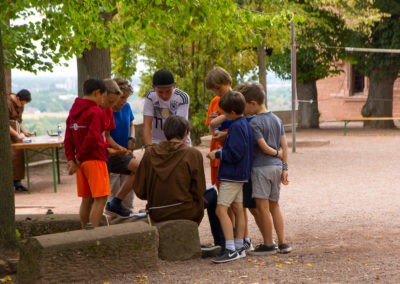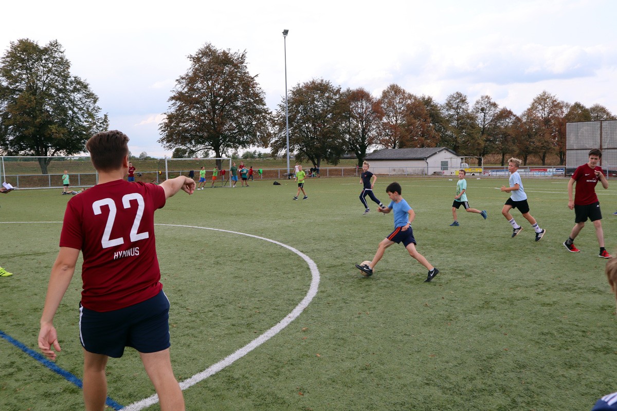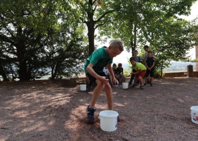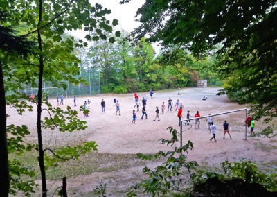 Den Rest des Nachmittags verbrachten wir wie jedes Jahr auf dem Schuckshof. In der Nähe unserer Jugendherberge konnte hier Fußball und Basketball gespielt werden oder am Lehmhang getobt werden. Zwar durfte aufgrund der Waldbrandgefahr nicht gegrillt werden, dafür gab es leckere Quiche.