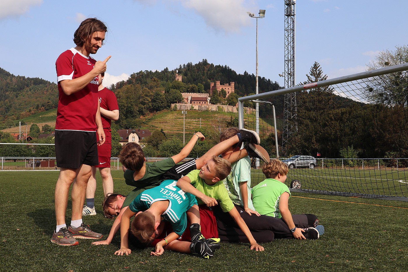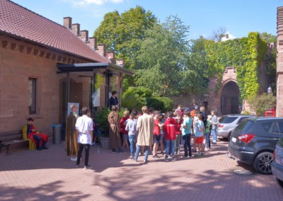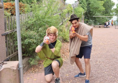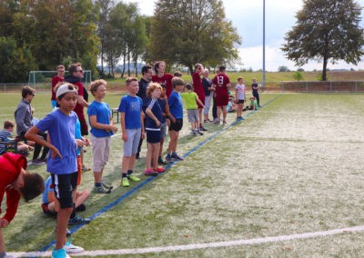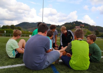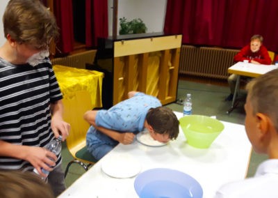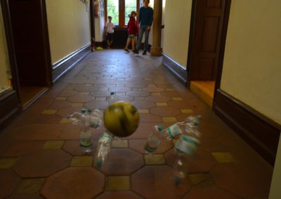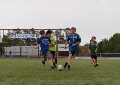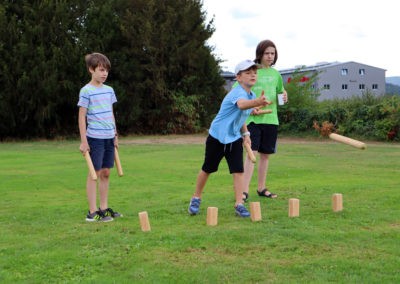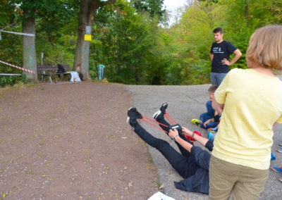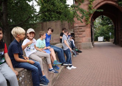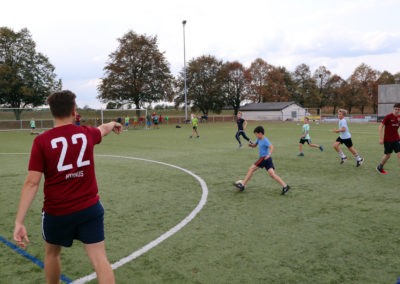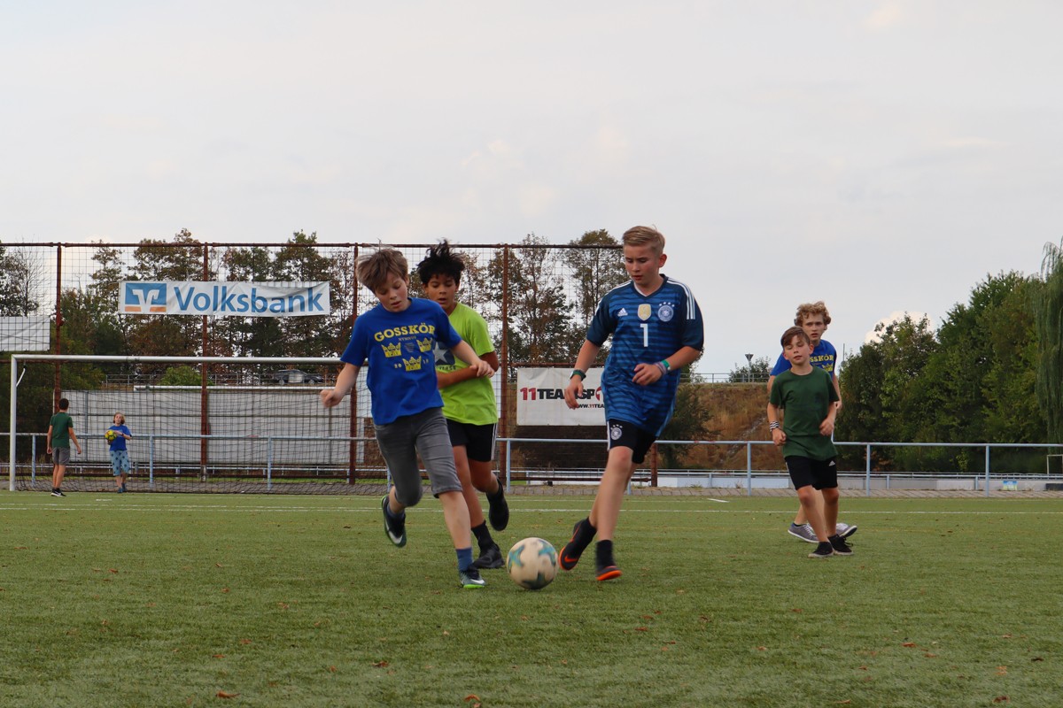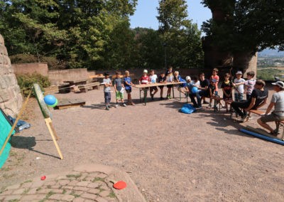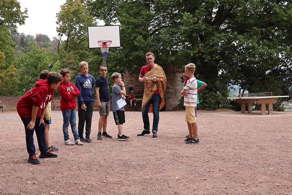 Den Rest des Nachmittags verbrachten wir wie jedes Jahr auf dem Schuckshof. In der Nähe unserer Jugendherberge konnte hier Fußball und Basketball gespielt werden oder am Lehmhang getobt werden. Zwar durfte aufgrund der Waldbrandgefahr nicht gegrillt werden, dafür gab es leckere Quiche.