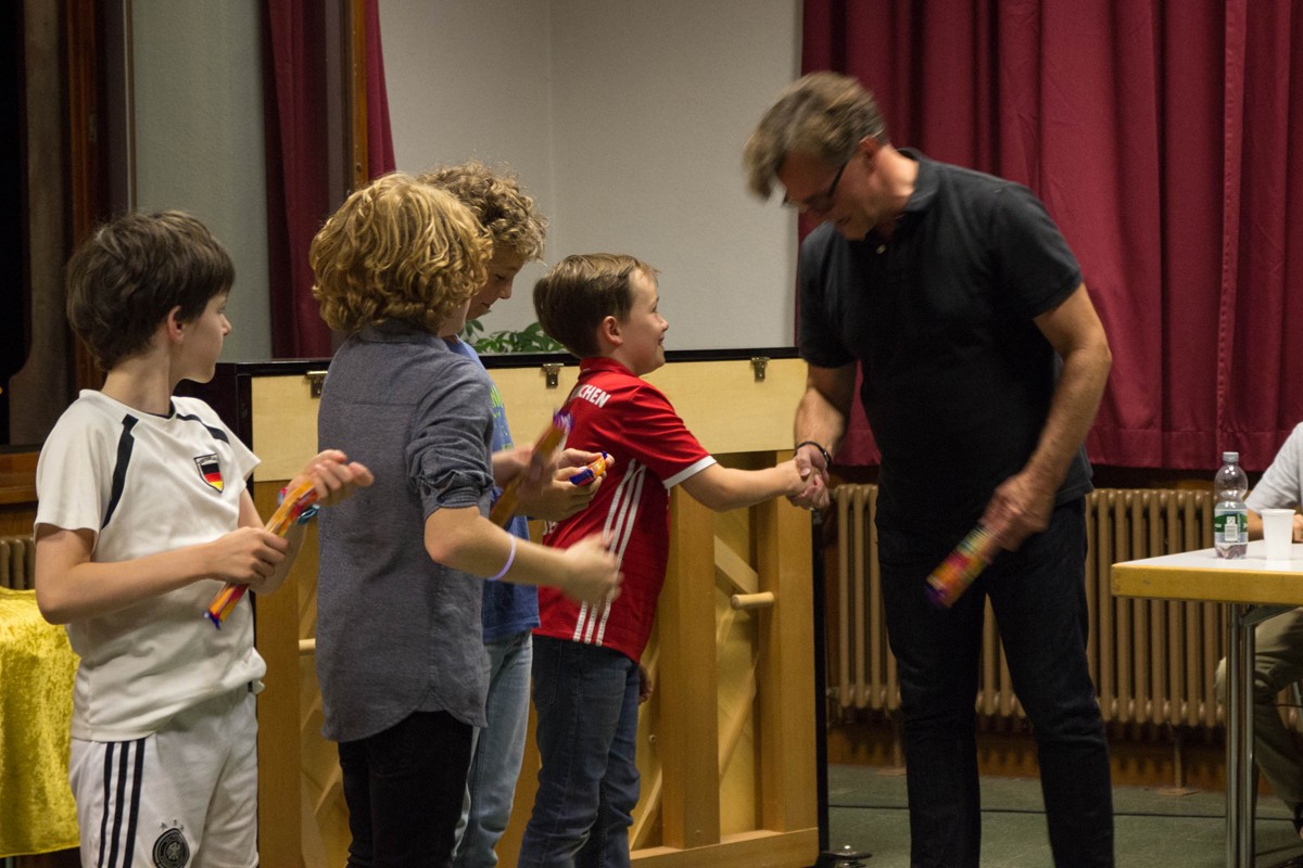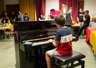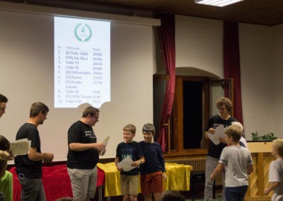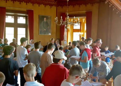 Wie die Tradition es will, gestaltete der Männerchor den letzten Block des Abendprogramms. Doch bevor der Männerchor die Urkunden der Hymnusiade verteilte, das Ergebnis des Geländespiels lüftete oder den Sieger des Strategiespiels kürte, hatte Herr Homburg das Wort, um die Sieger des Klavier-Wettbewerbs zu beglückwünschen. Der beste Pianist gab spontan ein Konzert – beeindruckend.