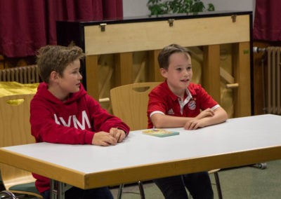 Drei Knaben führten, als Guido Kanz, Waldemar Hartmann und Günther Jauch verkleidet, moderierend durch den Abend. Unterstützt wurden sie dabei von einem MC als vierten Moderator und einer kleinen MC-Crew für den Auf- und Abbau der unterschiedlichen Nummern.