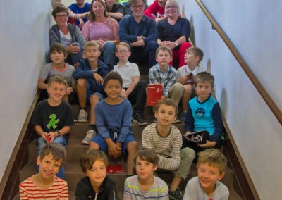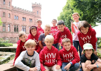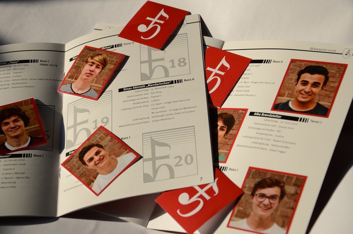 Zum Anderen gibt es jedes Jahr das MC-Feature. Auf jeder Freizeit dürfen die Knaben Quartettkarten, Autogrammkarten oder ähnliches von ihren Männerchörlern sammeln. In diesem Jahr war es, passend zur WM, ein Stickeralbum. Die jungen Sänger konnten also zehn Tage lang Sticker von der Chorleitung und dem Männerchor ergattern. Außerdem gab es besondere Karten, wie das Hymnus-Auto, ein Gruppenbild oder den Pokal des Baden-Württembergischen Männerchor Fußballturnieres (bei dem der Hmynus-Männerchor übrigens Rekordmeister ist).