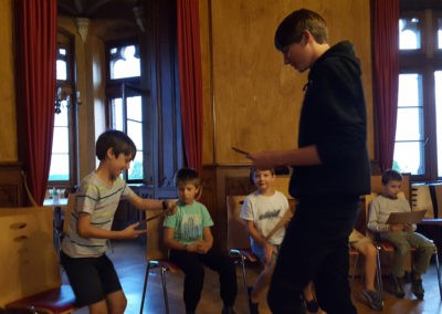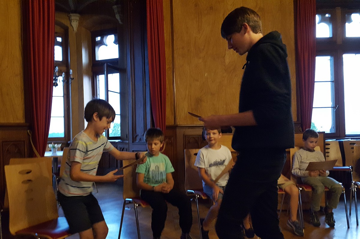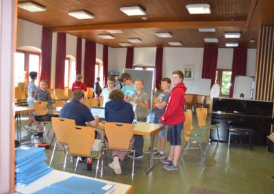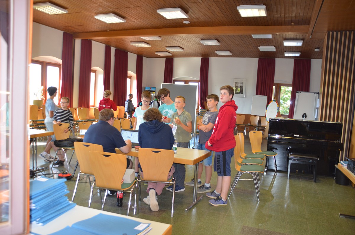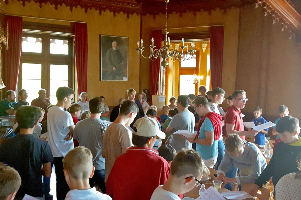 Zugleich war heute der letzte Tag des B-Chores auf der diesjährigen Freizeit. Die Sänger gaben zum Mittagessen eine klangvolle Kostprobe ihrer Probenergebnisse und wurden mit donnerndem Applaus nach Stuttgart verabschiedet. Dafür konnten wir die jungen Männerchörler als Verstärkung begrüßen, die nun für den Rest der Freizeit mit uns proben werden.