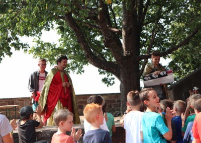 „Werte Recken, werte Obrigkeit, werter Pöbel, über euer aller Erscheinen freut sich König Sinansmund der Hungrige. Im Jahr fünf nach der Eroberung der Ortenburg (Die erste Freizeit zu Ortenberg, anno domini MMXIV, Anmerkung des Chronisten) möchten der hocherhabene König und seine treue Gefolgschaft Spiele anlässlich dieses Jubiläums ausrichten. Jeder Anwärter auf einen Platz im Rat der Knappen muss sich verschiedenen Prüfungen stellen. Diese verlangen euch all eure physische und psychische Kraft ab. Bevor wir nun die Spiele eröffnen schwören wir gemeinsam den Eid über Gleichheit und Gerechtigkeit unter den Augen des Königs.“