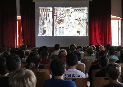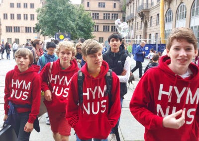 Dafür wurden wir von zwei Reisebussen nach Straßburg gefahren. In der Église St.-Thomas gestalteten wir einen französischen Gottesdienst mit. In dieser Kirche musizierten vor uns schon Wolfgang Amadeus Mozart und Albert Schweitzer. In dem Credo von Moritz Eggert kamen Textzeilen aus Schweitzers „Mein Wort an die Menschen“ vor – ein passenderes Ambiente hätten wir uns für die Aufführung dieses Stücks wohl nicht suchen können. Wohl mit Rücksicht auf uns, aber auch auf die zahlreichen mitgereisten Hymnus-Eltern wurden viele Teile des Gottesdienstes auch nochmal auf Deutsch wiederholt.
