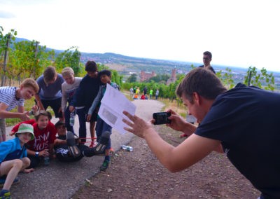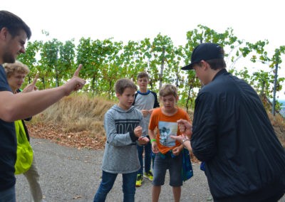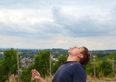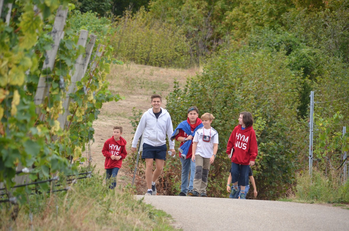 Vom Schuckshof ging es zu Fuß durch die malerischen Weinberge zurück zum Schloss, wo wir nach einer sehr kurzen Abendprobe alle müde ins Bett fielen.