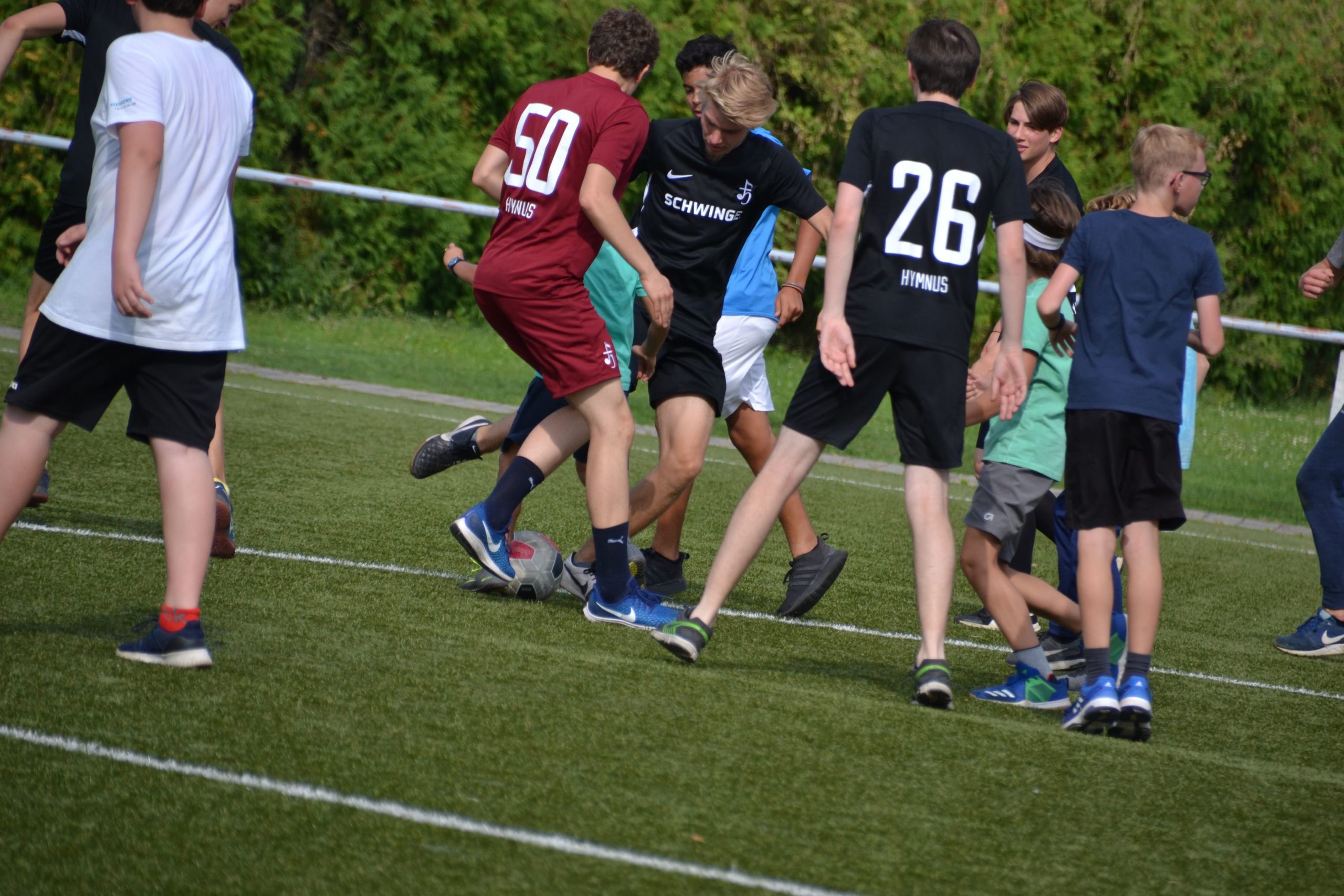 Danach kam es zum großen Showdown zwischen Männerchor und Knabenchor. 60 Leute, ein Ball, ein Kommentator mit Kreativität. In anderen Worten: organisiertes Chaos. Das Ergebnis nach 15 Minuten war ein überragendes 3:1 für den Männerchor. In der zweiten Hälfte wurden dann die Teams gemischt und Knaben und Männer spielten Seite an Seite gegen ihre Singbros. Der Spaß stand im Vordergrund und der kam sicherlich nicht zu kurz an diesem heißen Nachmittag.