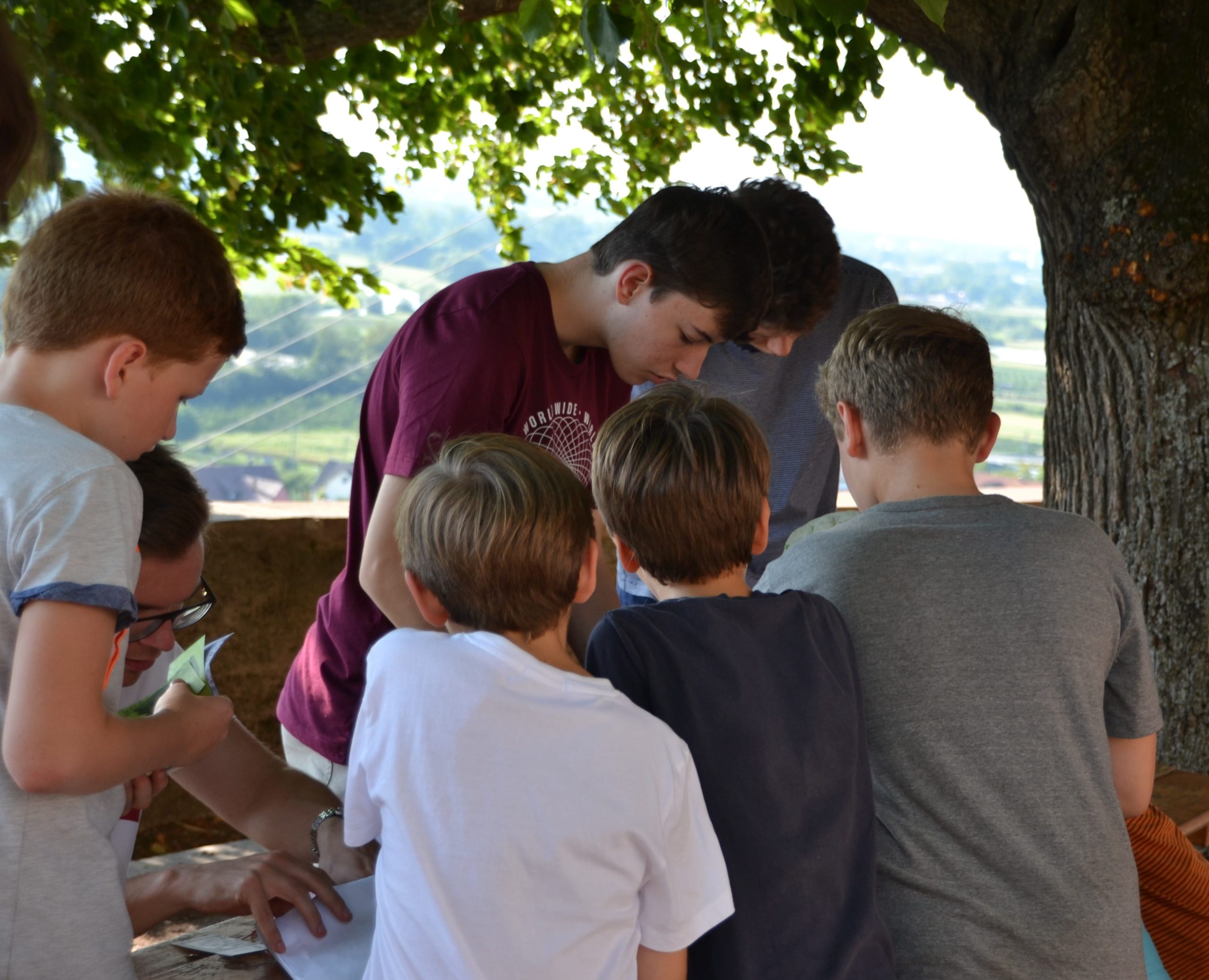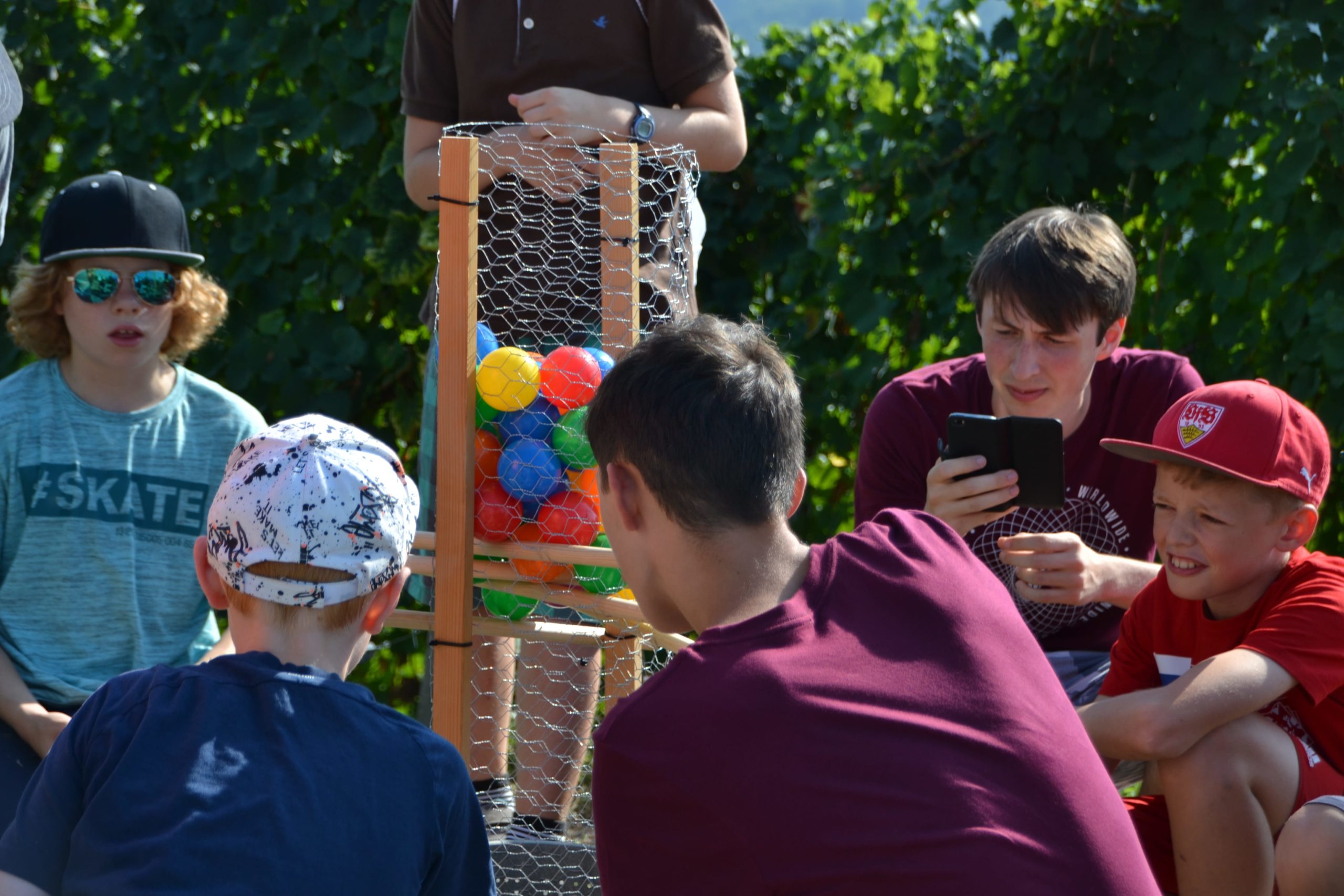 An sieben Stationen kam es zum Duell zwischen einem Männerchörler und mehreren Knaben. Von Geschicklichkeitsspielen, über Wettessen, Bälle suchen und einem Musikquiz, bis hin zu Steinschleudern und Weinberglauf. Obwohl einige Duelle sehr knapp waren, setzte sich der Männerchor in allen Duellen durch. Das klare Ergebnis: 7:0 für den Männerchor. Trotz des klaren Ergebnisses hatten alle Beteiligten reichlich Spaß und das Geländespiel war ein voller Erfolg, vor Allem aus Männerchorperspektive;). Die Gemeinschaft war durch den Wettbewerb sogar gestärkt und somit das Ziel erreicht. Denn wie wir alle wissen: “Ein Chor, ein guter Chor, das ist das Schönste was es gibt auf der Welt”.