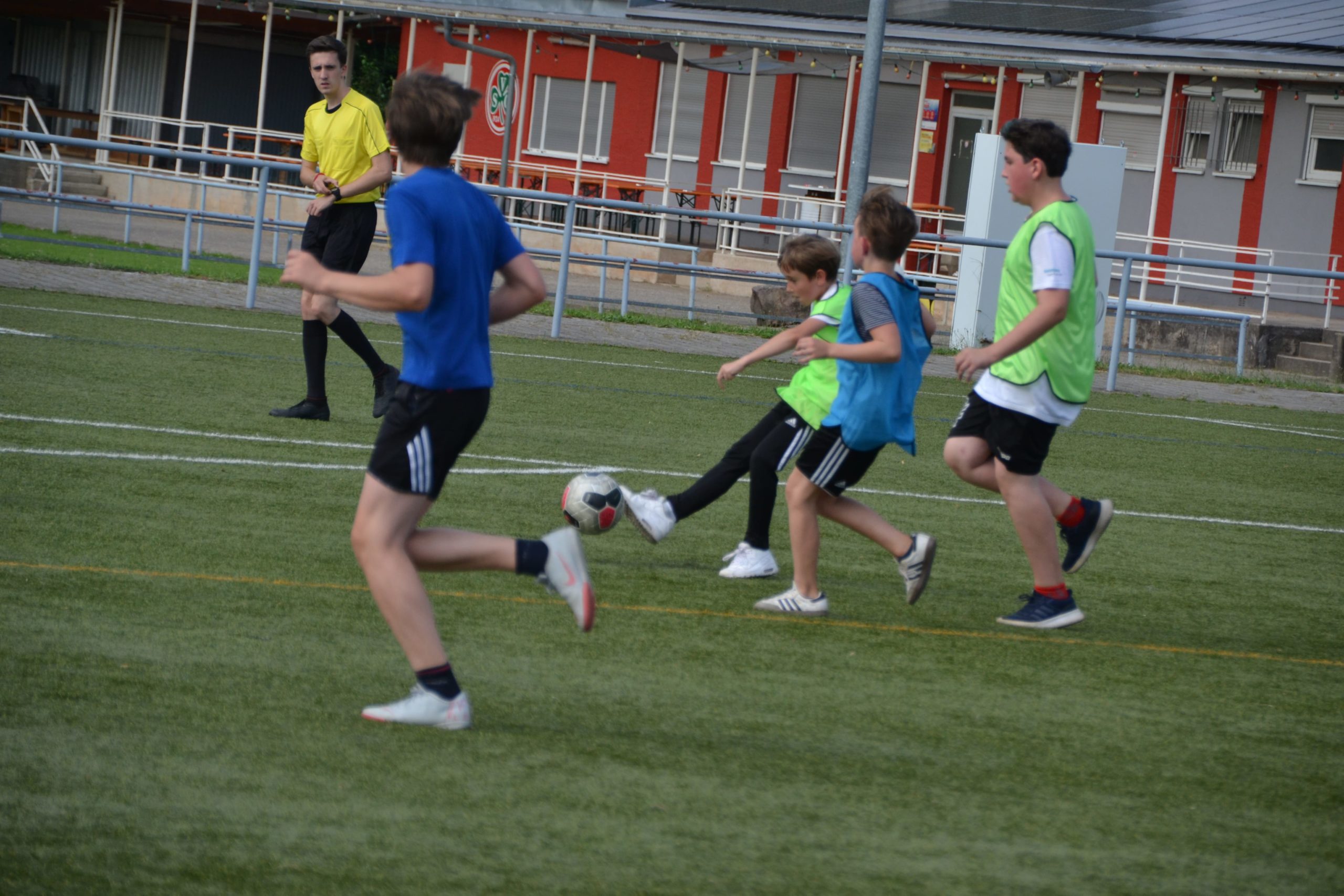 Der heutige Tag war der sportliche Höhepunkt dieser Freizeit. Mit den Klängen von Brahms im Ohr ging es hinab ins Tal zum örtlichen Fußballplatz. Bei wieder einmal hervorragendem Wetter wurde der Klassiker zwischen Grün und Blau neu aufgelegt. Die Farben wurden jeweils in 3 Teams aufgeteilt und so wurde über 9 Partien der Sieger ausgespielt. Nach aufregenden, oft auch knappen, Spielen setzte sich das Grüne Team mit 5 Siegen und drei Unentschieden klar durch.