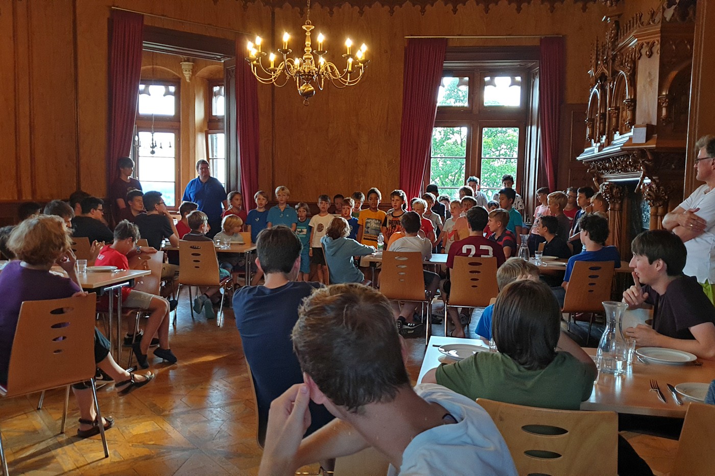 Klavier, Schach oder doch Tischtennis? Heute hatten die Knaben die Qual der Wahl, denn heute standen die Turniere an! Vom alljährlichem, mittlerweile traditionellem Klavierwettbewerb über intensive Basketballspiele und Teamgeist fordernde Ballwechsel beim Volleyball hinzu spannenden (Wikinger-) Schachpartien-Ein Nachmittag mit viel hin und her, viel knappen Entscheidungen. Mit Tischtennis, Tischkicker und sogar Fußballkegeln war das vielfältige Angebot komplett, für jeden war etwas dabei. Nach einer Phase des Freien Spiels und anschließendem Abendessen wurde die Anwesenheit des gesamten Chores bei der Abendprobe genutzt, um dem Sängern zu erklären, wie das System des „offenen Chorheims“ funktioniert, welches ab dem nächsten Schuljahr gilt. Nach der Probe, bei der schon die Ersten „Jauchzet dem Herrn alle Welt“ von Mendelssohn auswendig singen konnten, folgte wie gewohnt für die jüngeren Knaben die Gutenachtgeschichte, für die Oldies ging es nochmal raus aus dem Schloss in Richtung der Weinberge.