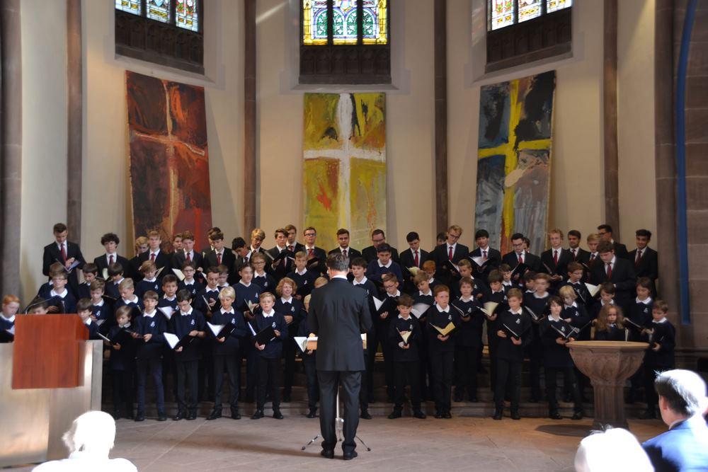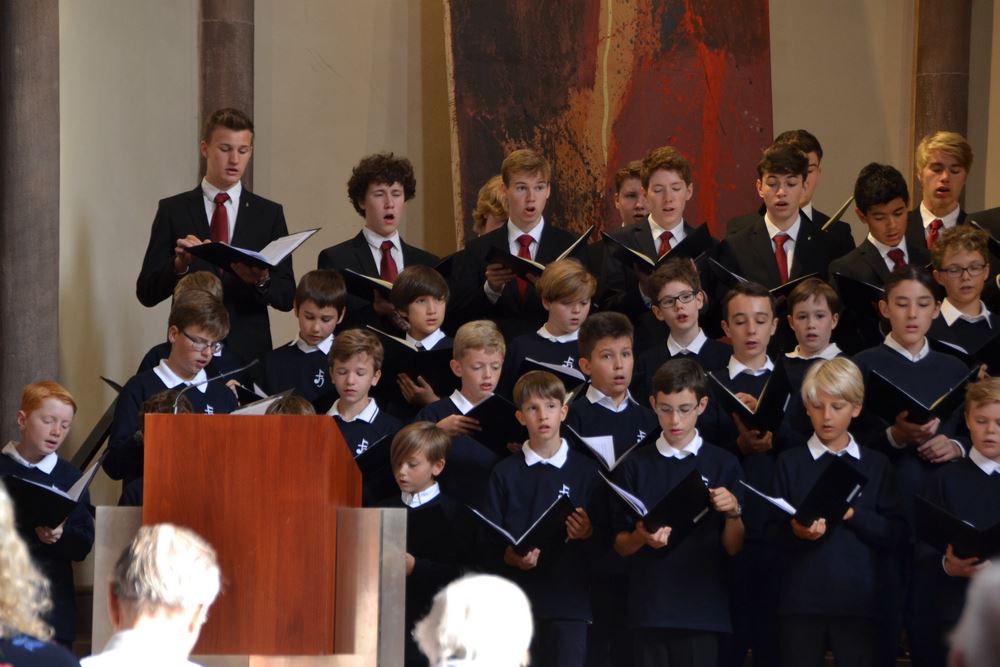 Morgens ging es ausnahmsweise schon um 7 Uhr aus den Betten, denn Eile war geboten. Ein flottes Frühstück, schnell den Berg runter und mit dem Bus ab zur Kirche. Nach einer kurzen Anspielprobe durfte sich der Chor an einem sehr nett hergerichteten Buffett bedienen. Mit frischem Hefezopf im Magen sang es sich doch zu dieser morgendlichen Stunde deutlich besser. Wir sangen Brahms, Schütz, Stanford und Homburg. Zudem erfreuten wir uns an dem reichlichen Besuch der Hymnusfamilie, von Ehemaligen bis hin zu Eltern.