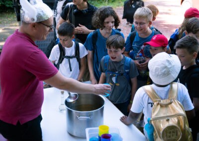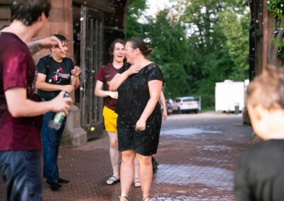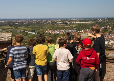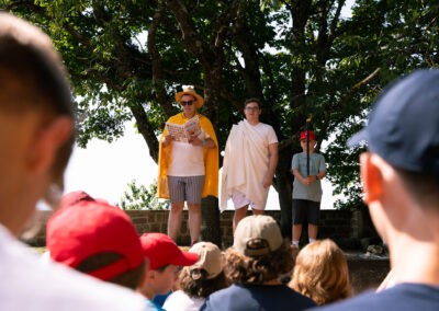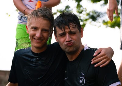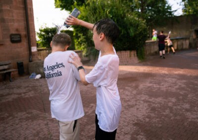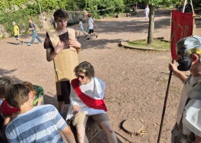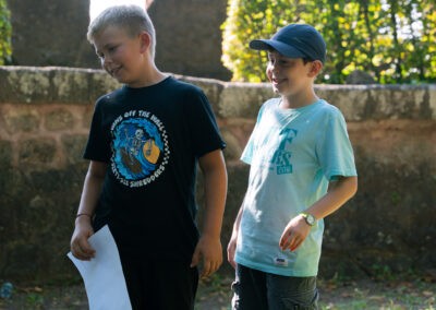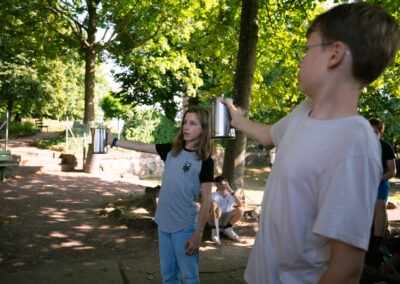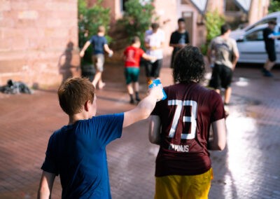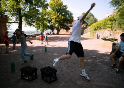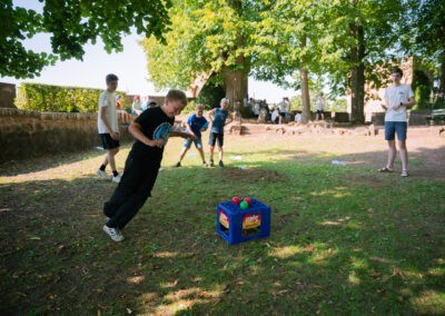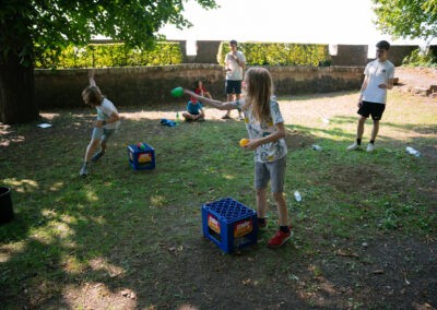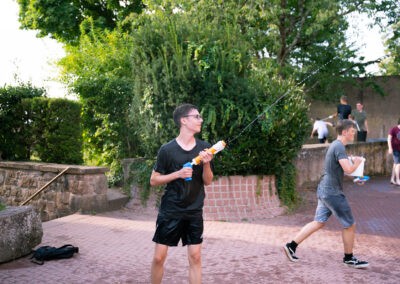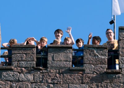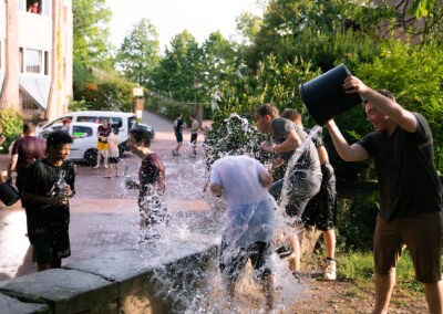 Doch das war noch nicht das Ende unseres Abenteuers. Am späten Nachmittag machten wir uns zu Fuß auf den Rückweg zur Burg. Oben angekommen, erwartete uns eine willkommene Überraschung: Auf dem Burghof war eine Wasserschlacht vorbereitet! Nach der Hitze des Tages war dies die perfekte Erfrischung, und wir stürzten uns begeistert ins kühle Nass.