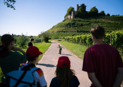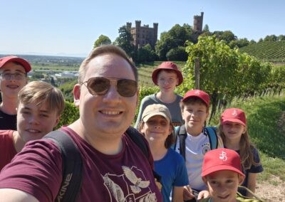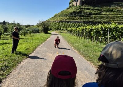 Am frühen Nachmittag kehrten wir zum Bus zurück, der uns nach Fessenheim brachte, einem kleinen Ort nahe Ortenberg. Von dort aus führte uns ein kurzer Fußmarsch zum Schuckshof, wo ein Spielplatz auf uns wartete. Der Nachmittag verging wie im Flug, als wir uns in verschiedenen Spielen maßen und die frische Luft genossen.