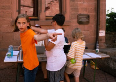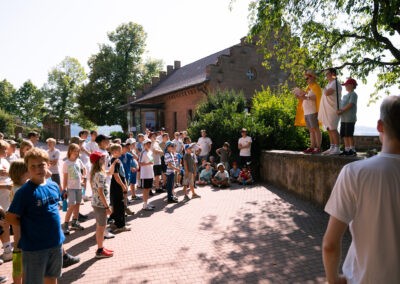 Es folgten die Gute-Nacht-Geschichte und das Oldieprogramm mit Capture the Flag. Dann ging es für alle in der Burg früh ins Bett, um viel Schlaf zu tanken für den morgigen Sonntag: Es gilt den obligatorischen Gottesdienst der Freizeit zu feiern.