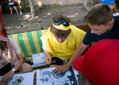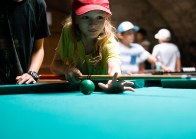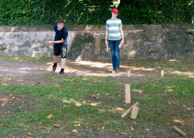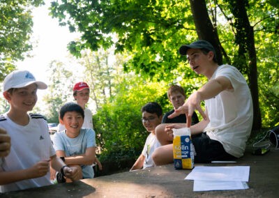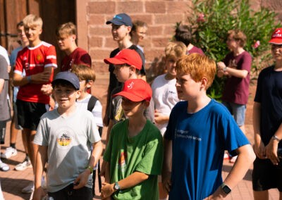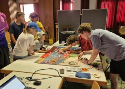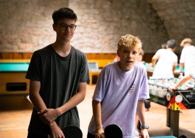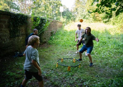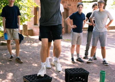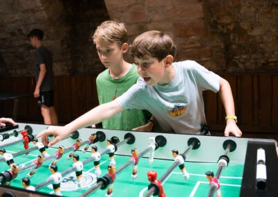 Das Nachmittagsprogramm war heute etwas freier und offener als die letzten Tage. Anstatt eines festen Großgruppenspiels wurden heute verschiedene Stationen im ganzen Schloss aufgebaut. An diesen Stationen konnte man unterschiedlichen Aktivitäten nachgehen: Es gab ein Schachturnier, ein Tischtennis-Turnier, eine Billardstation, Volleyball, Basketball, Spikeball, eine Leseecke, eine Station mit Gesellschaftsspielen, eine Gosskörling-Station und so weiter. Die Knaben konnten sich eine oder mehrere Aktivitäten aussuchen, der sie am Nachmittag nachgehen wollten.