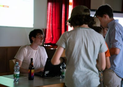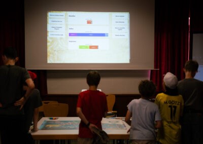 Während der Mittagsprobe lief der Aufbau für das heutige Nachmittagsprogramm schon auf Hochtouren: Beamer und Monitore, Laptops und Verkleidungen. Das kann nur eines bedeuten – Strategiespiel!