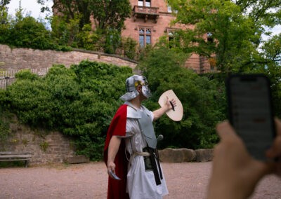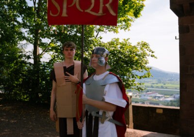Mit zwei Bussen kam die Zenturie der Schwaben heute an. Den Ortenberg erklommen, wussten sie die kühlen Mauern sehr zu schätzen. Am Burgtor standen aber Torwächter, die penibel darauf achteten, dass kein Römer in die Burg kommt: Asterix und Obelix schenkten den Ankömmlingen daraufhin sogar etwas von ihrem berühmt-berüchtigten Zaubertrank aus.
