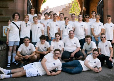 Zum Abendessen gab es herzhaften Gulasch oder Ratatouille, dazu Nudeln und Kartoffelknödel – ein Festmahl, das den krönenden Abschluss eines erlebnisreichen Tages bildete. Doch der Abend hielt noch eine besondere Überraschung bereit: Ehemalige Hymnusianer und MCs, die diesmal nicht auf die Freizeit mitfahren konnten, besuchten uns für die Abendprobe. Unter ihnen war auch Nico von Hauff, der heute Geburtstag hatte und diesen Tag traditionell mit uns verbrachte. Es war ein herzlicher Empfang, und die Freude, alte Freunde wiederzusehen, war groß.