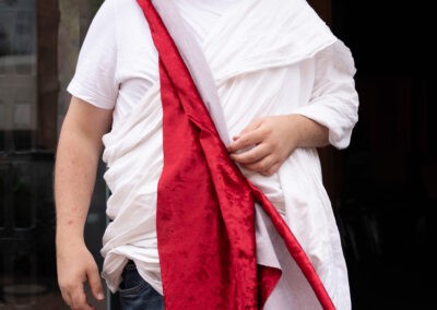 Daraufhin gab es als Nachmittagsprogramm des Strategiespiels zweiter Teil. Jetzt heißt es wieder Rohstoffe sammeln, Waren veredeln, Abenteuer starten, Duelle gewinnen, Handelswege erschließen, Gebäude bauen, Transportkapazitäten erhöhen, und so weiter. Auf dem ganzen Hof schwirren Sänger umher, um möglichst schnell von einer Station zur nächsten zu kommen. Im Gartensaal stehen Viele, um einen Blick auf das sich stets aktualisierende Scoreboard zu werfen. Und immer und überall hört man „Ave Caesar!“, wie es Pflicht ist, wenn Caius Iulius Caesar an einer Gruppe vorbeischreitet. Zwischen 17:15 und 17:40 Uhr schließen die Stationen, doch wir hätten noch lange weiter spielen können. So viele glückliche Kinderaugen belohnen auch die unglaublich große Arbeit, die das Team in die Vorbereitung gesteckt hat.