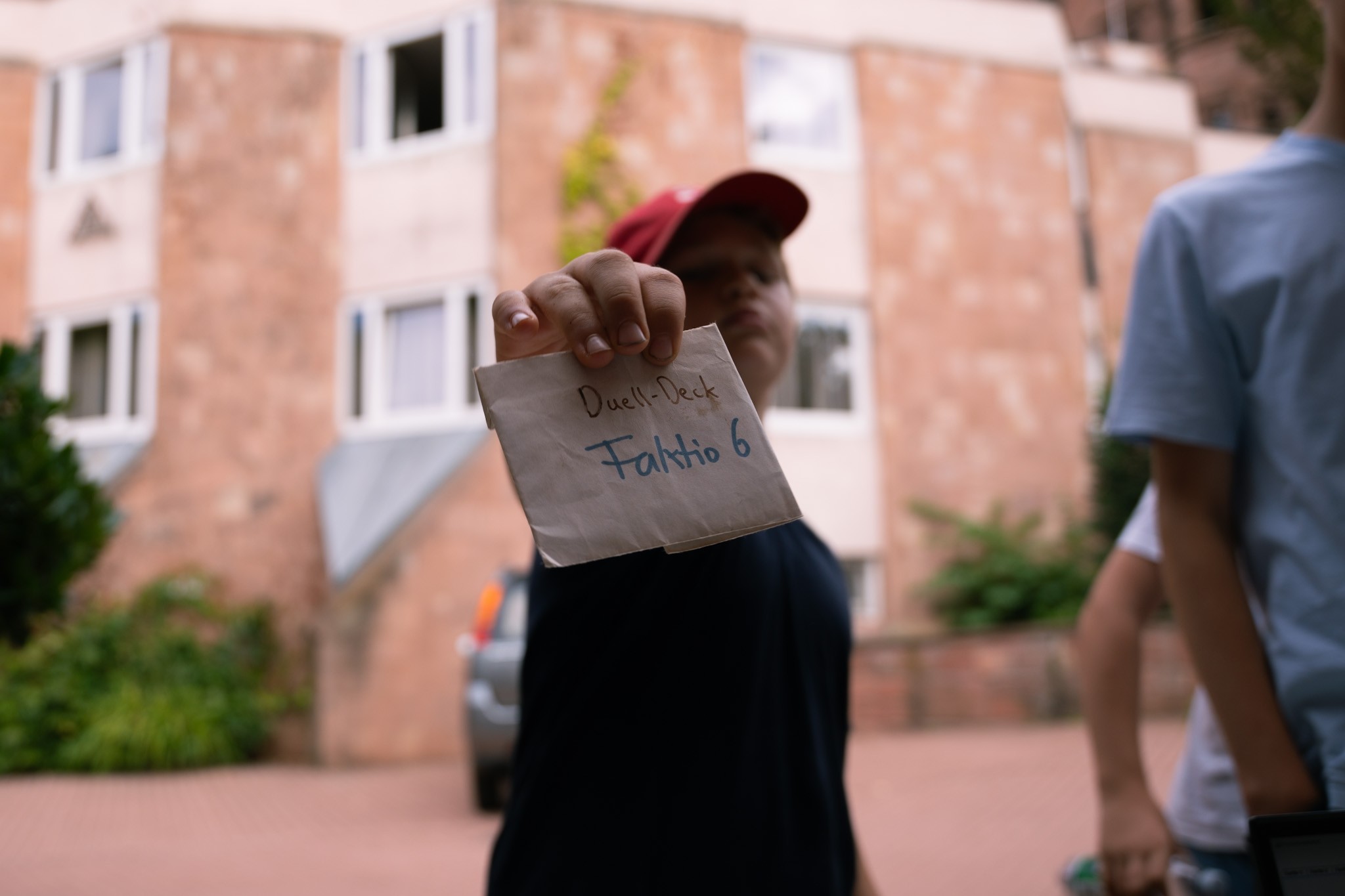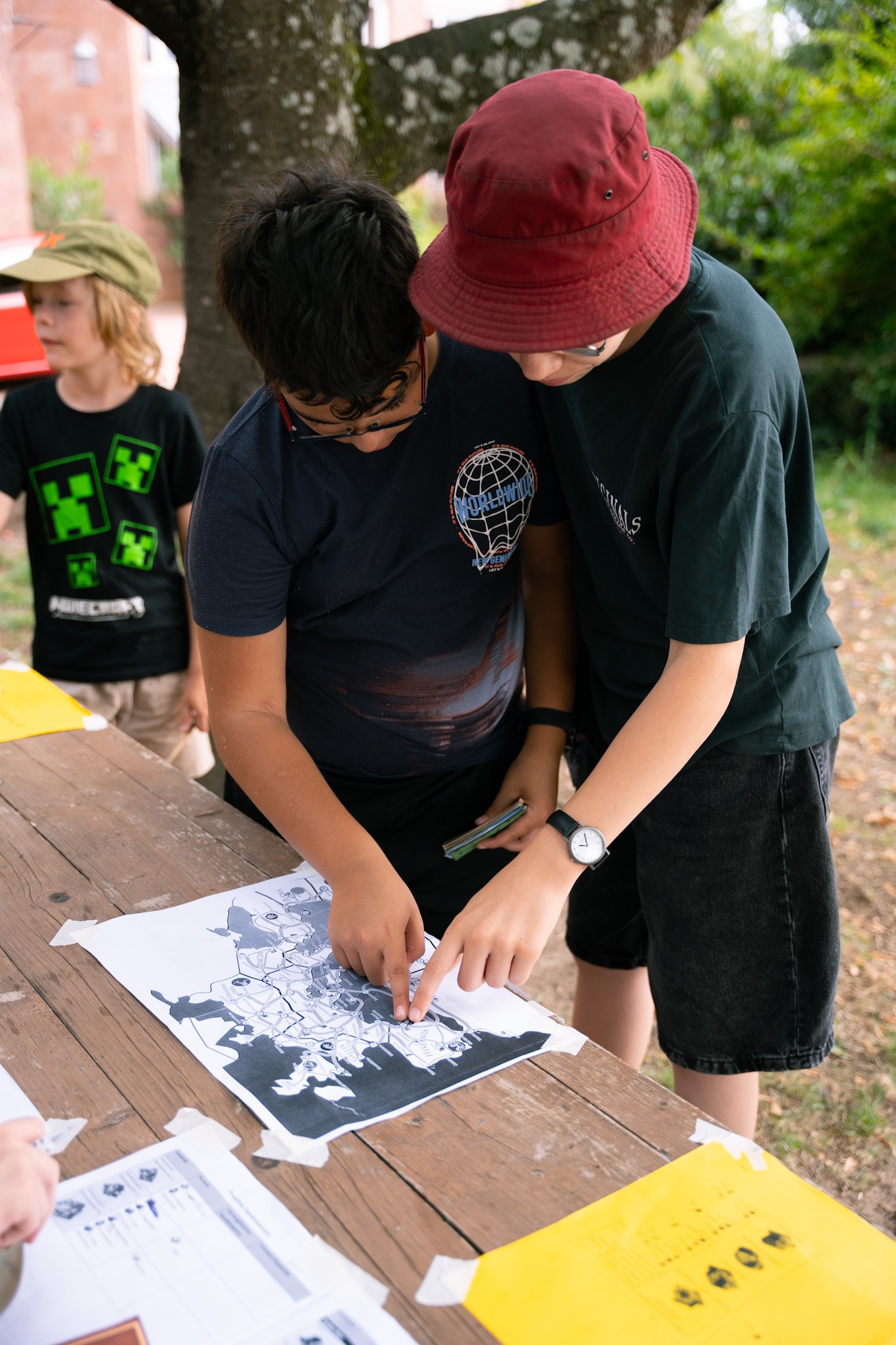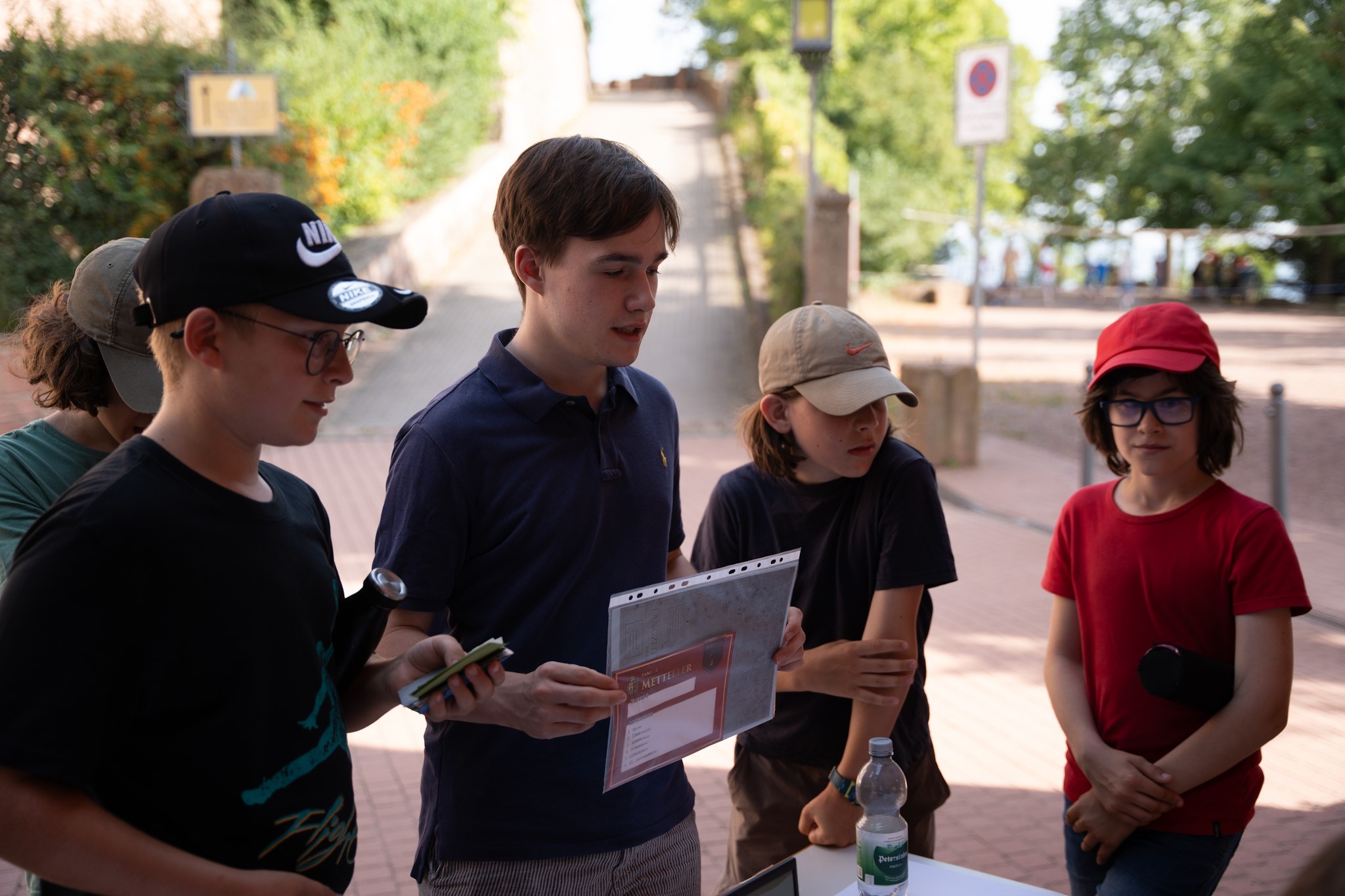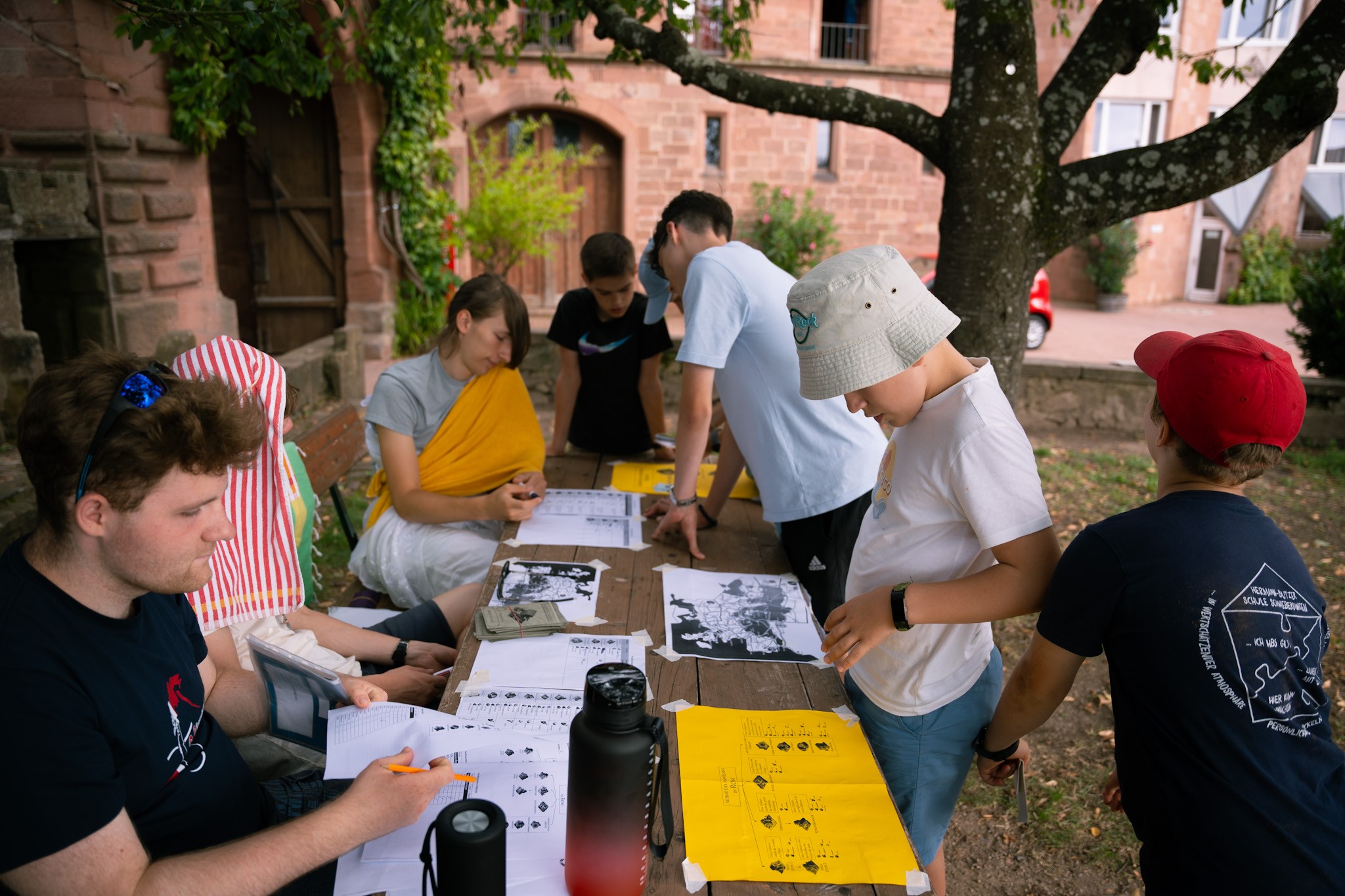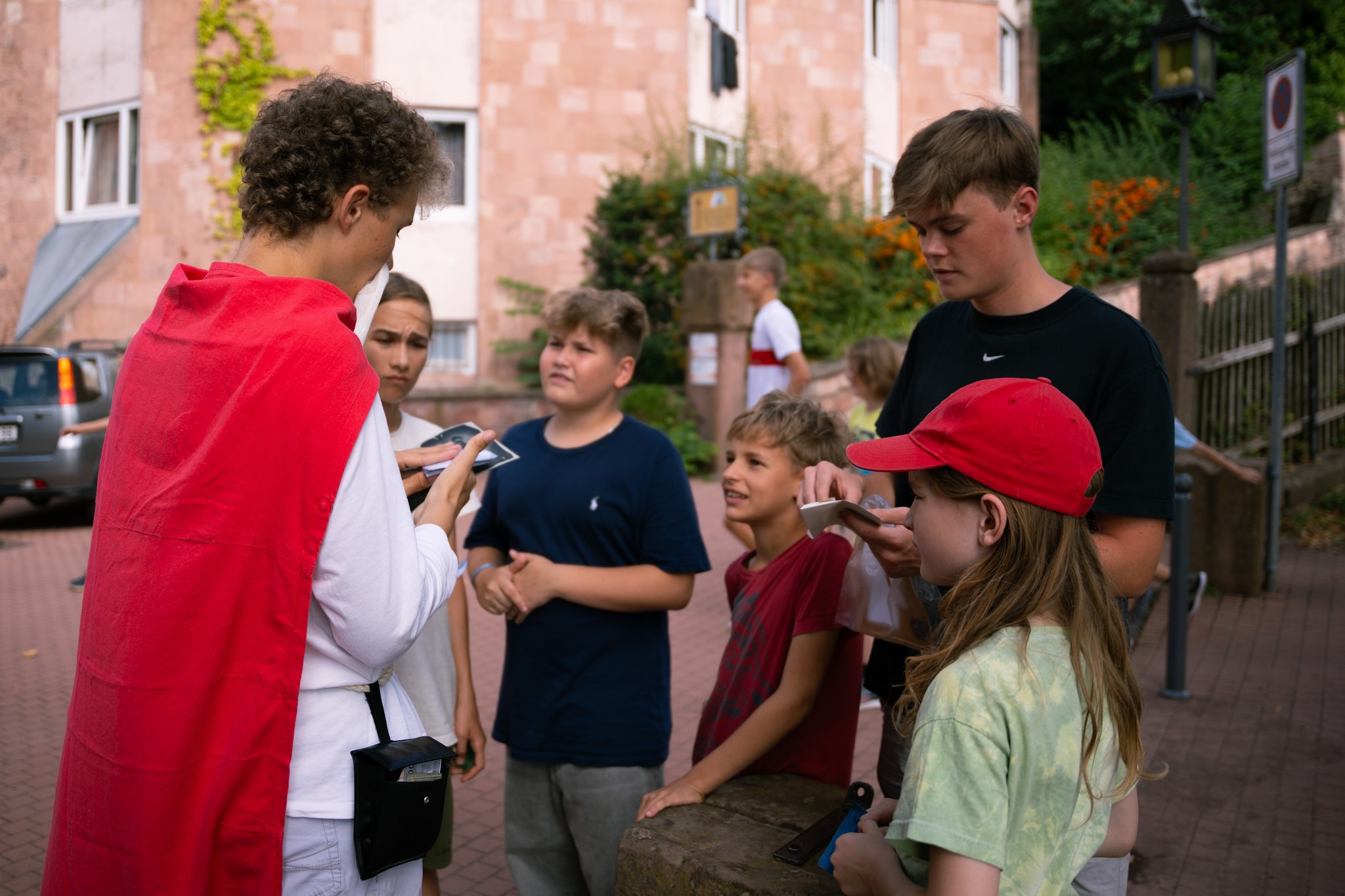 Zum ersten Nachmittagsprogramm galt es an vier Dinge zu denken: Kopfbedeckung, Trinkflasche, mit Sonnencreme eincremen, festes Schuhwerk. Es stand nicht etwa die lang geplante Wanderung nach Fischbach an, nein, heute war ein Geländespiel geplant!