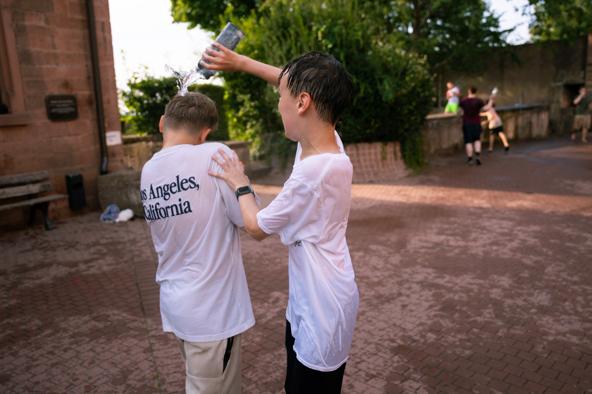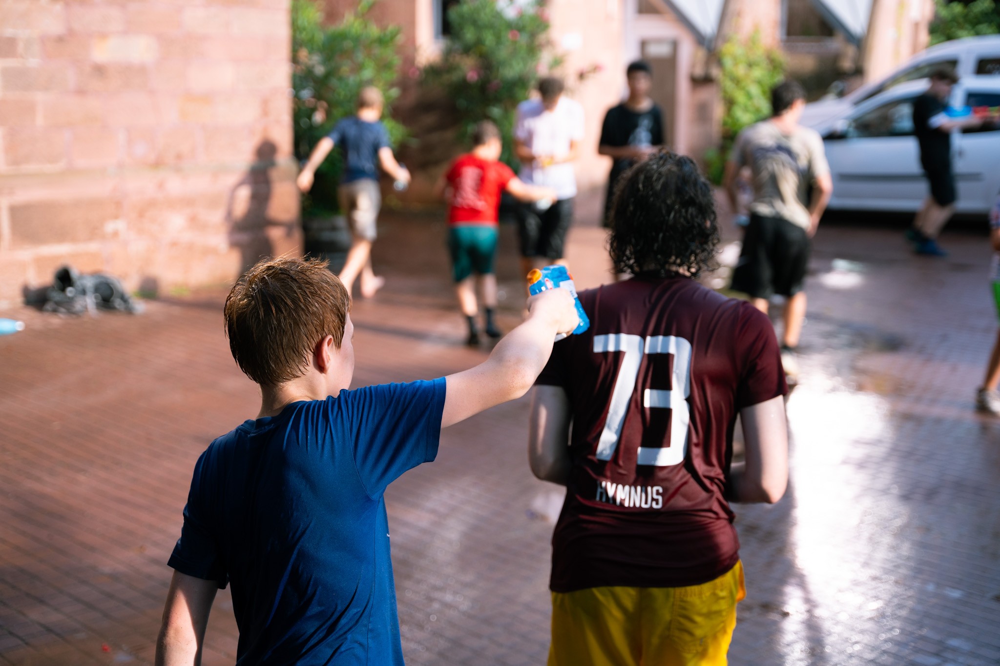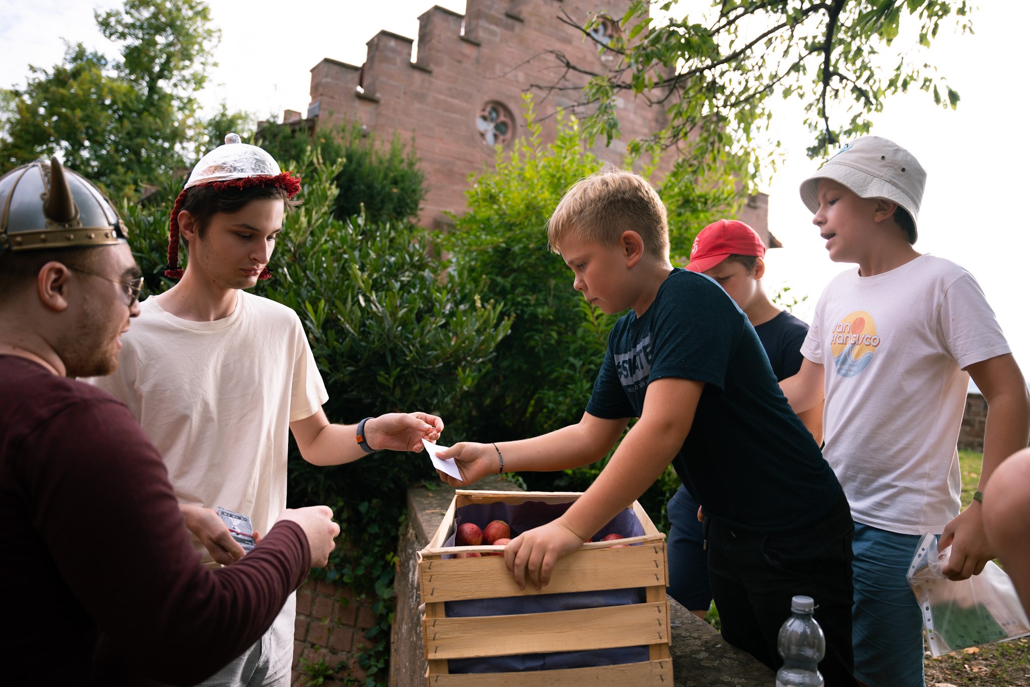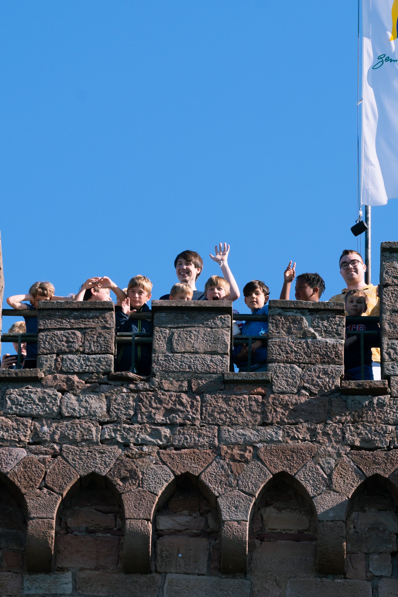 Doch das war noch nicht das Ende unseres Abenteuers. Am späten Nachmittag machten wir uns zu Fuß auf den Rückweg zur Burg. Oben angekommen, erwartete uns eine willkommene Überraschung: Auf dem Burghof war eine Wasserschlacht vorbereitet! Nach der Hitze des Tages war dies die perfekte Erfrischung, und wir stürzten uns begeistert ins kühle Nass.
