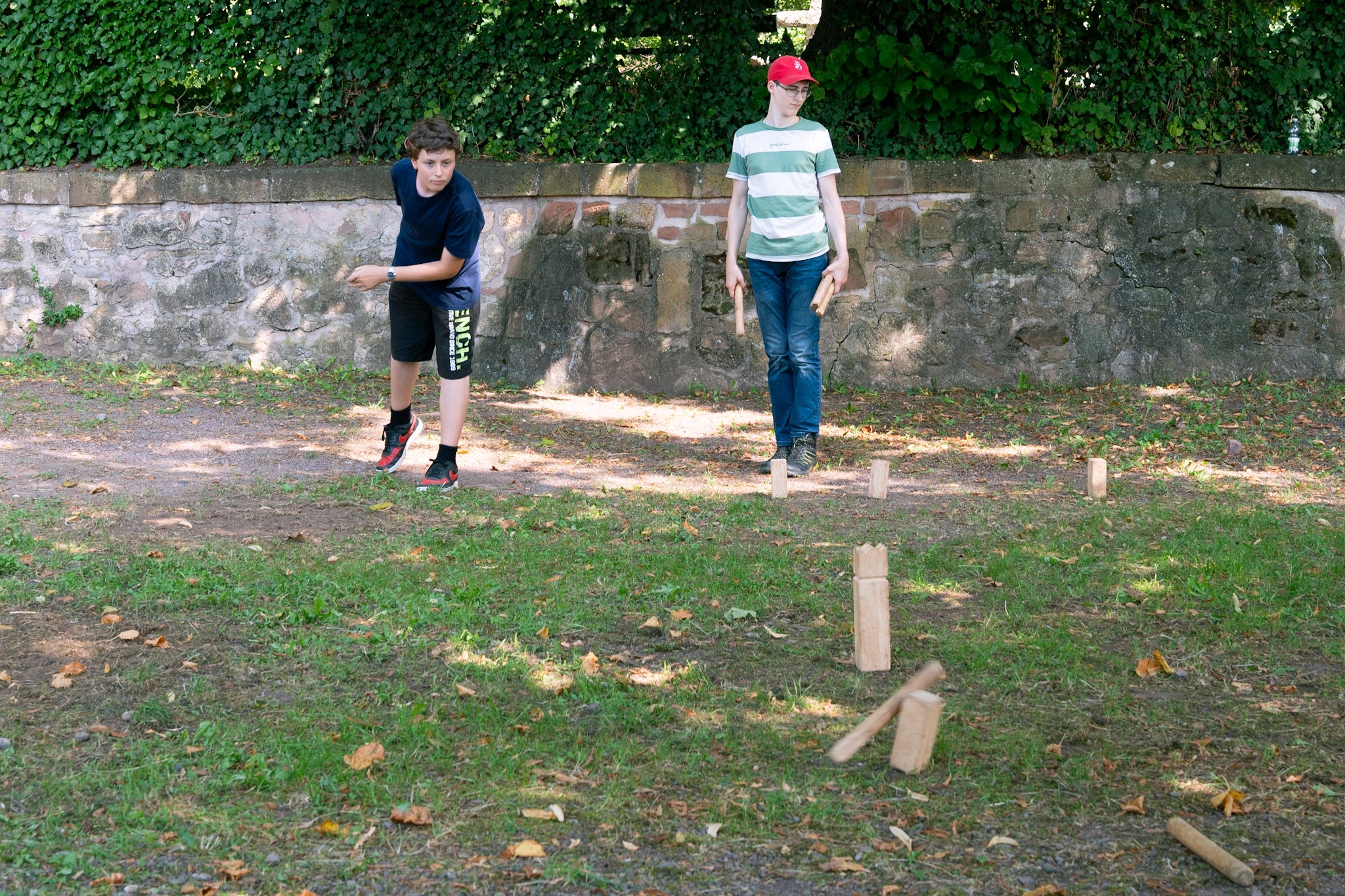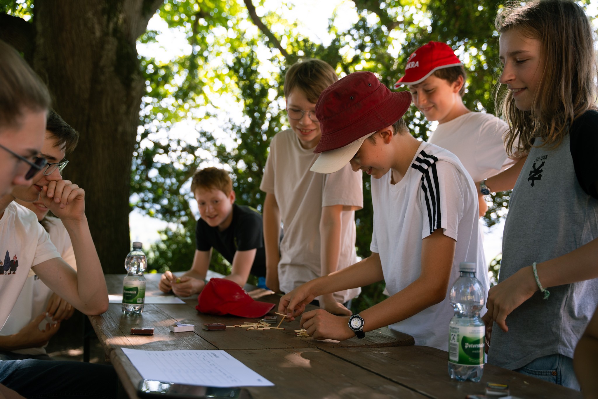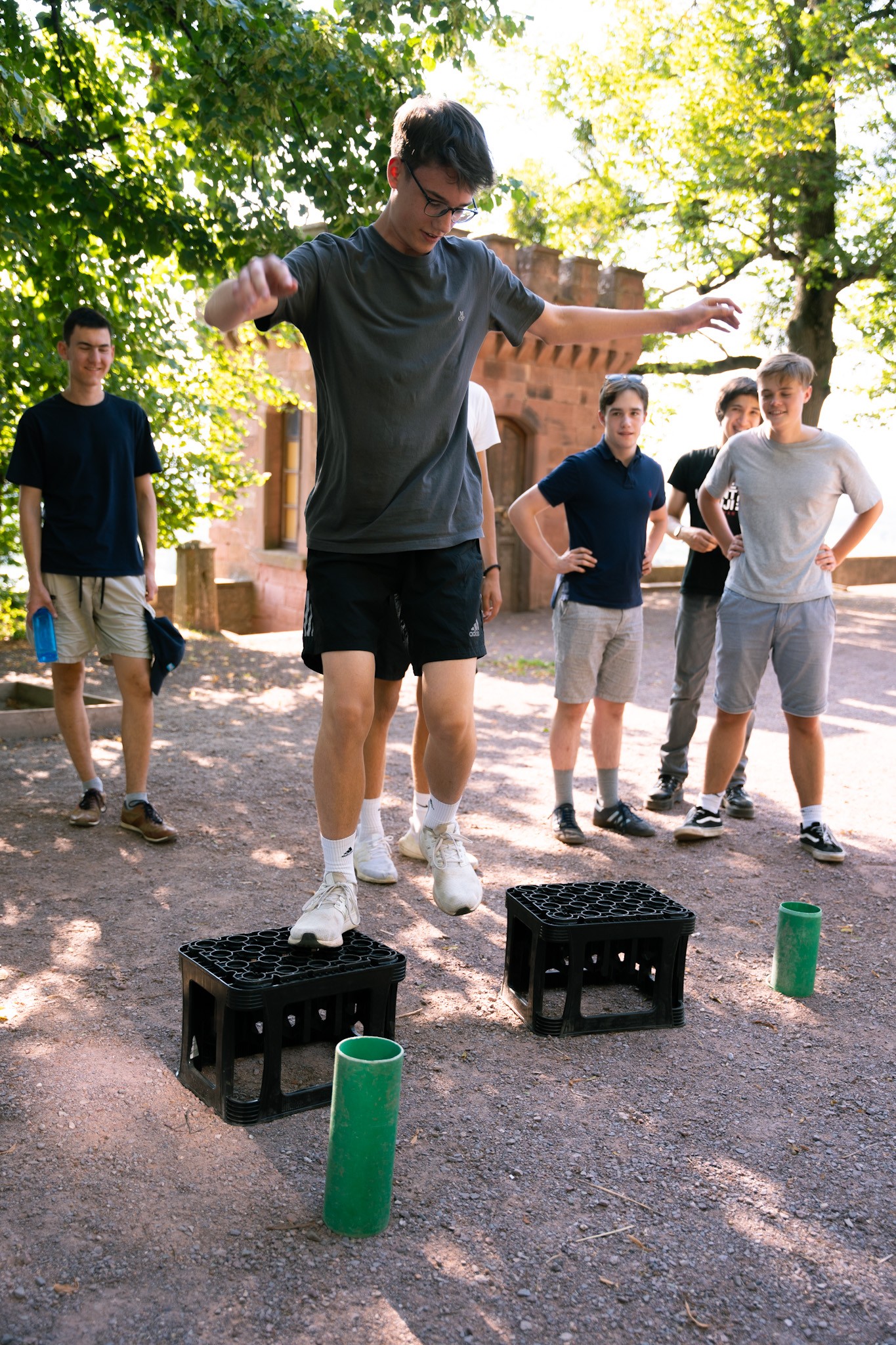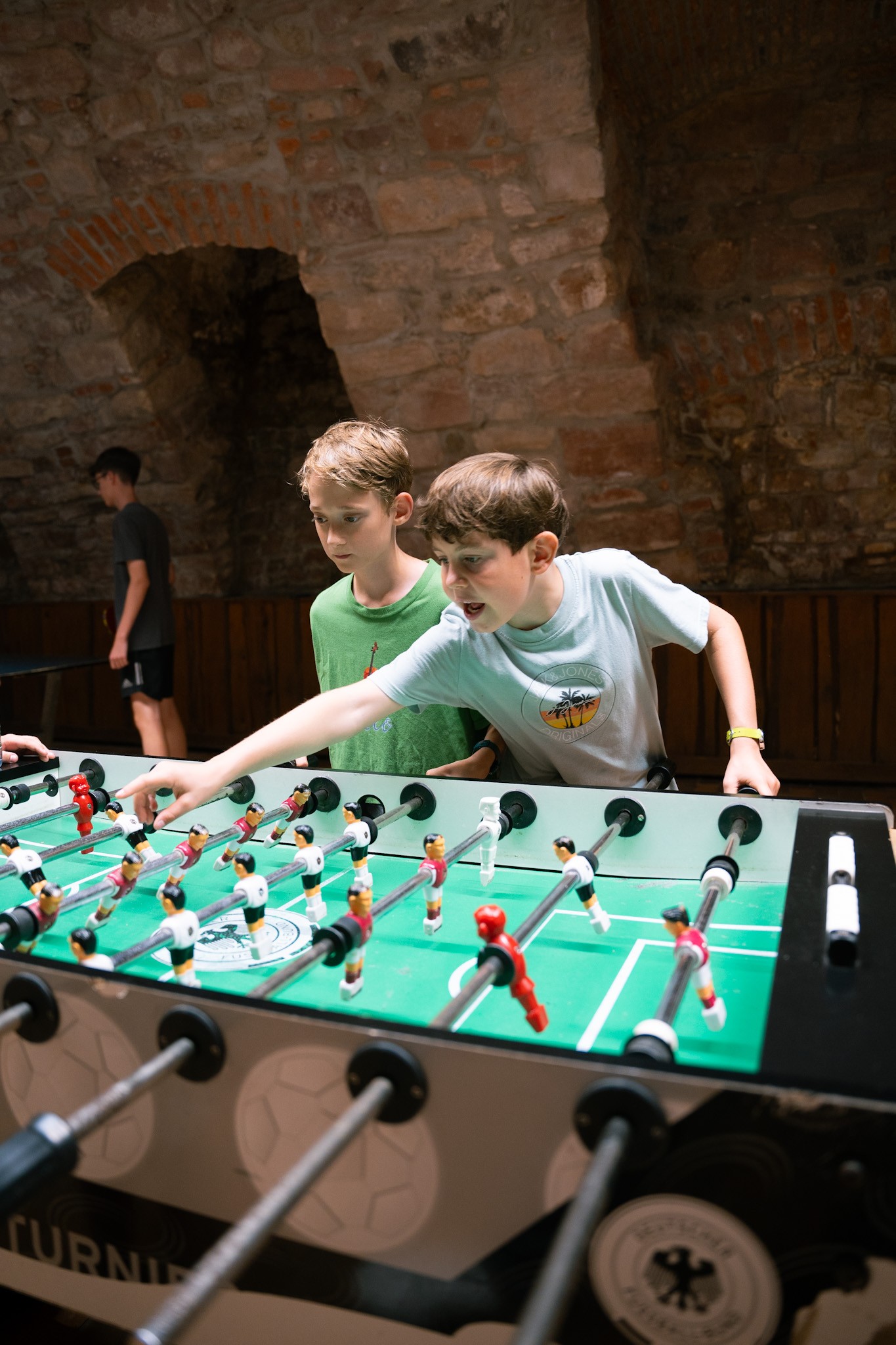 Das Nachmittagsprogramm war heute etwas freier und offener als die letzten Tage. Anstatt eines festen Großgruppenspiels wurden heute verschiedene Stationen im ganzen Schloss aufgebaut. An diesen Stationen konnte man unterschiedlichen Aktivitäten nachgehen: Es gab ein Schachturnier, ein Tischtennis-Turnier, eine Billardstation, Volleyball, Basketball, Spikeball, eine Leseecke, eine Station mit Gesellschaftsspielen, eine Gosskörling-Station und so weiter. Die Knaben konnten sich eine oder mehrere Aktivitäten aussuchen, der sie am Nachmittag nachgehen wollten.