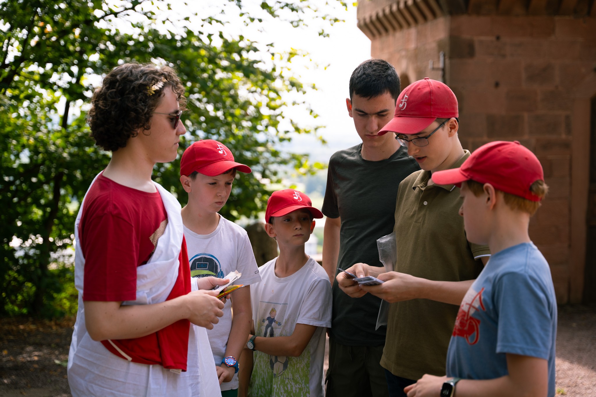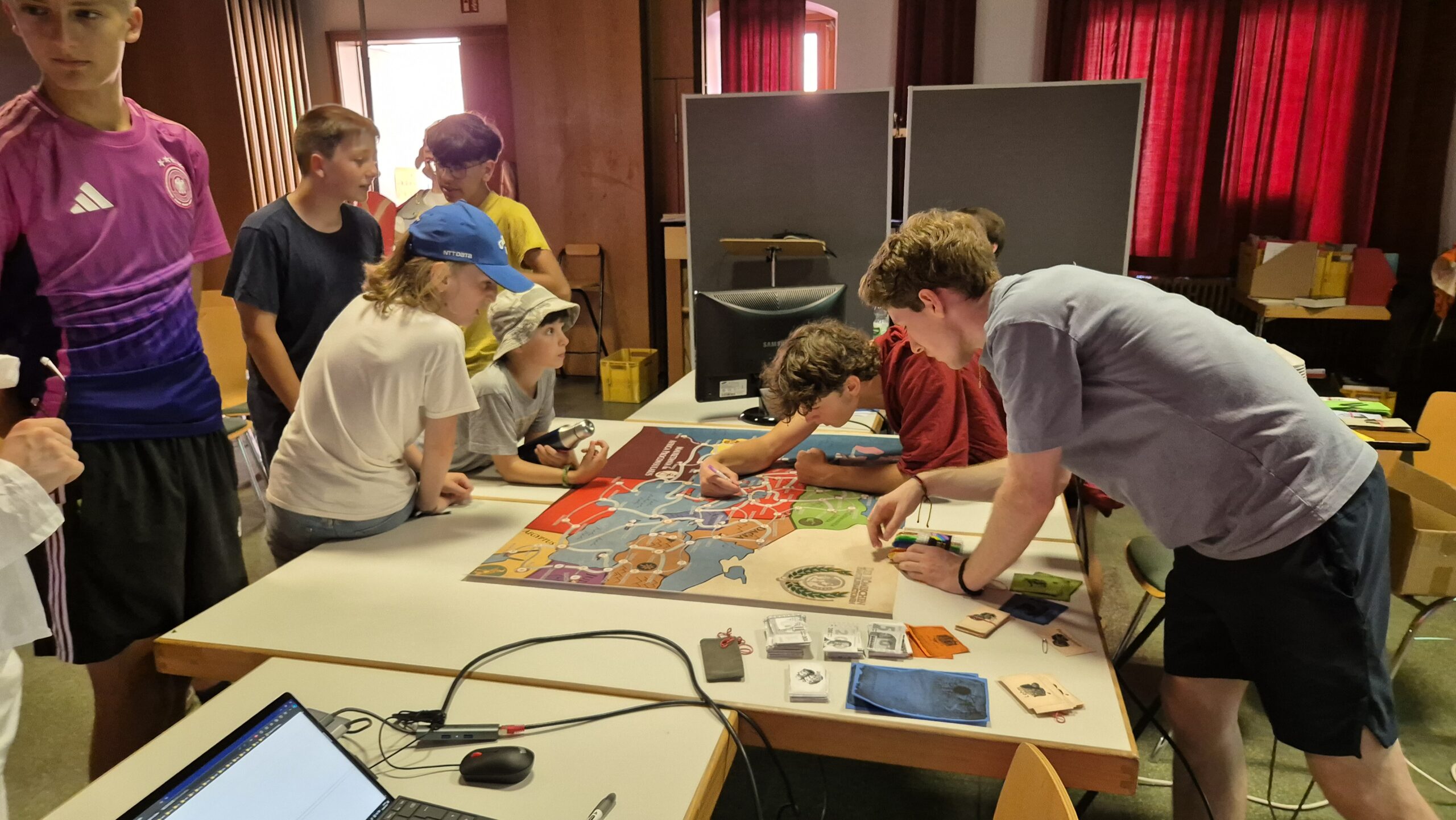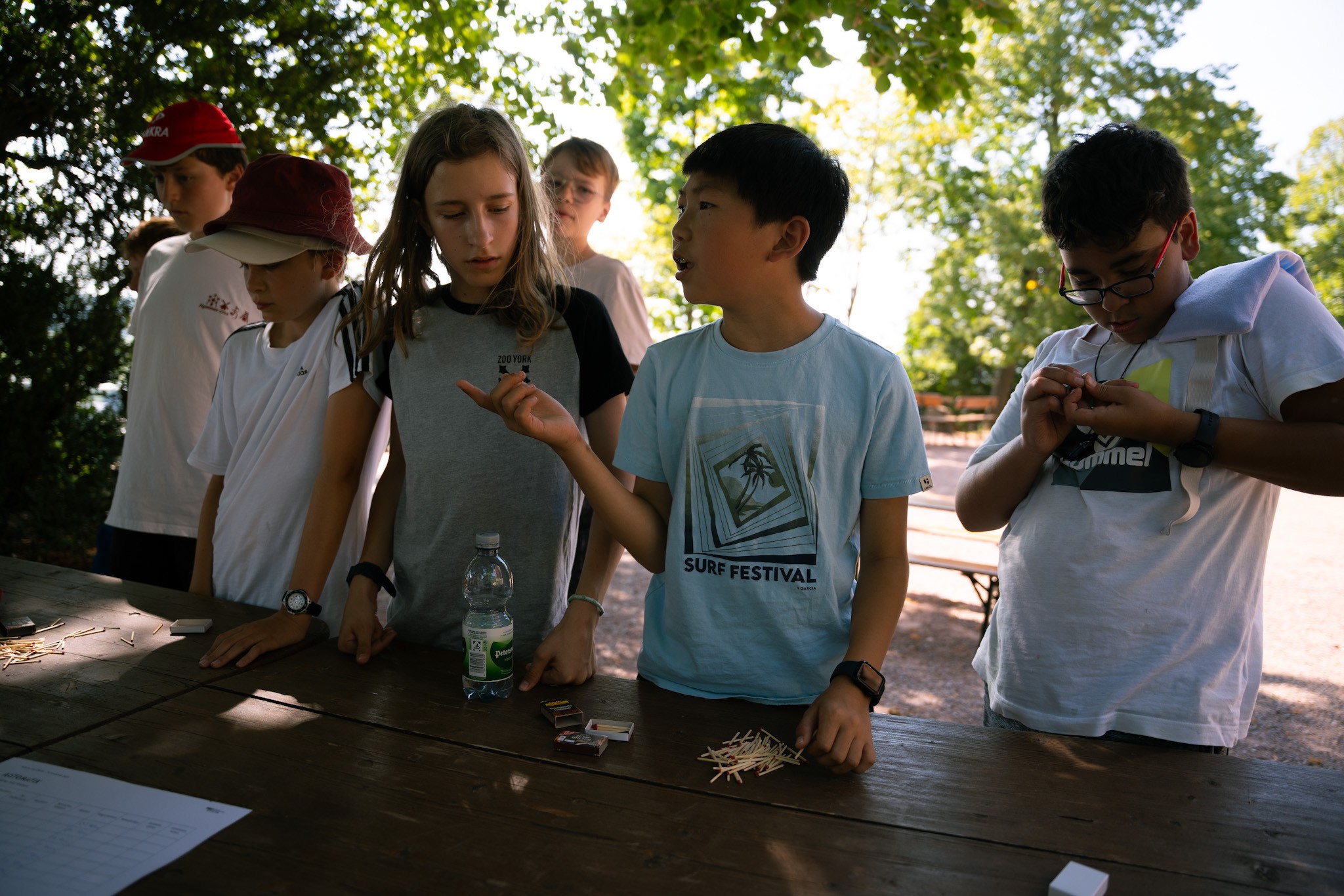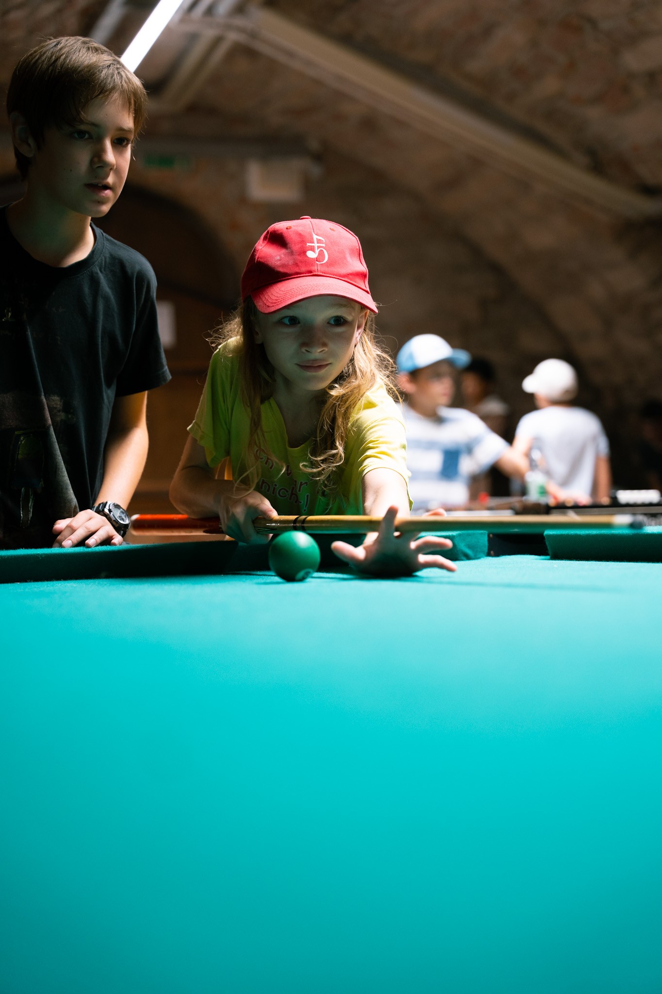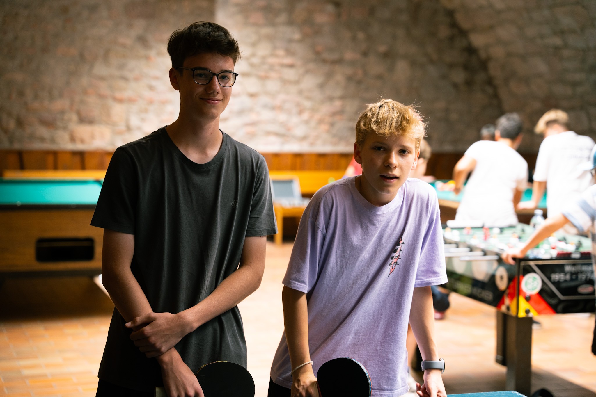 Das Nachmittagsprogramm war heute etwas freier und offener als die letzten Tage. Anstatt eines festen Großgruppenspiels wurden heute verschiedene Stationen im ganzen Schloss aufgebaut. An diesen Stationen konnte man unterschiedlichen Aktivitäten nachgehen: Es gab ein Schachturnier, ein Tischtennis-Turnier, eine Billardstation, Volleyball, Basketball, Spikeball, eine Leseecke, eine Station mit Gesellschaftsspielen, eine Gosskörling-Station und so weiter. Die Knaben konnten sich eine oder mehrere Aktivitäten aussuchen, der sie am Nachmittag nachgehen wollten.