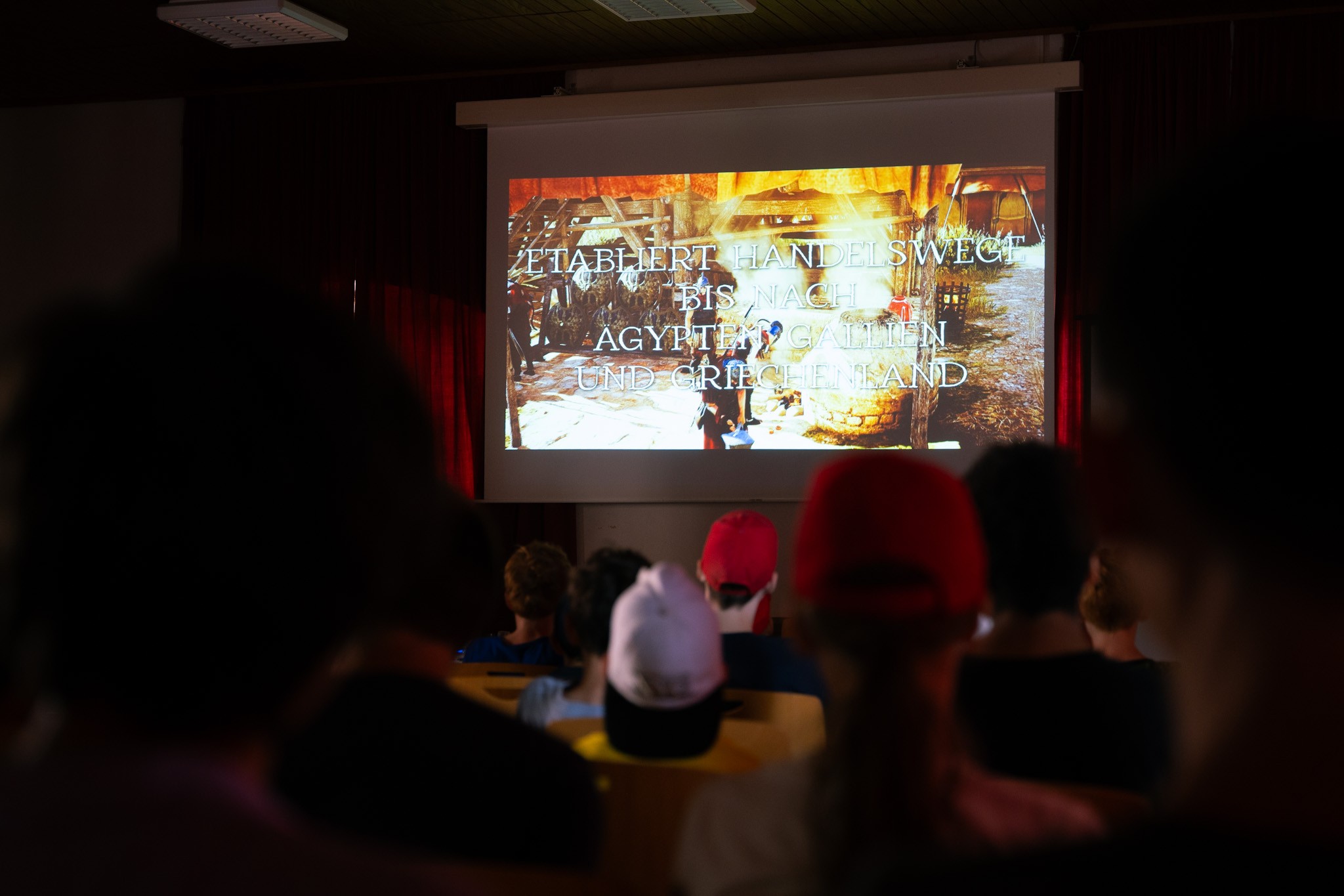 Während der Mittagsprobe lief der Aufbau für das heutige Nachmittagsprogramm schon auf Hochtouren: Beamer und Monitore, Laptops und Verkleidungen. Das kann nur eines bedeuten – Strategiespiel!