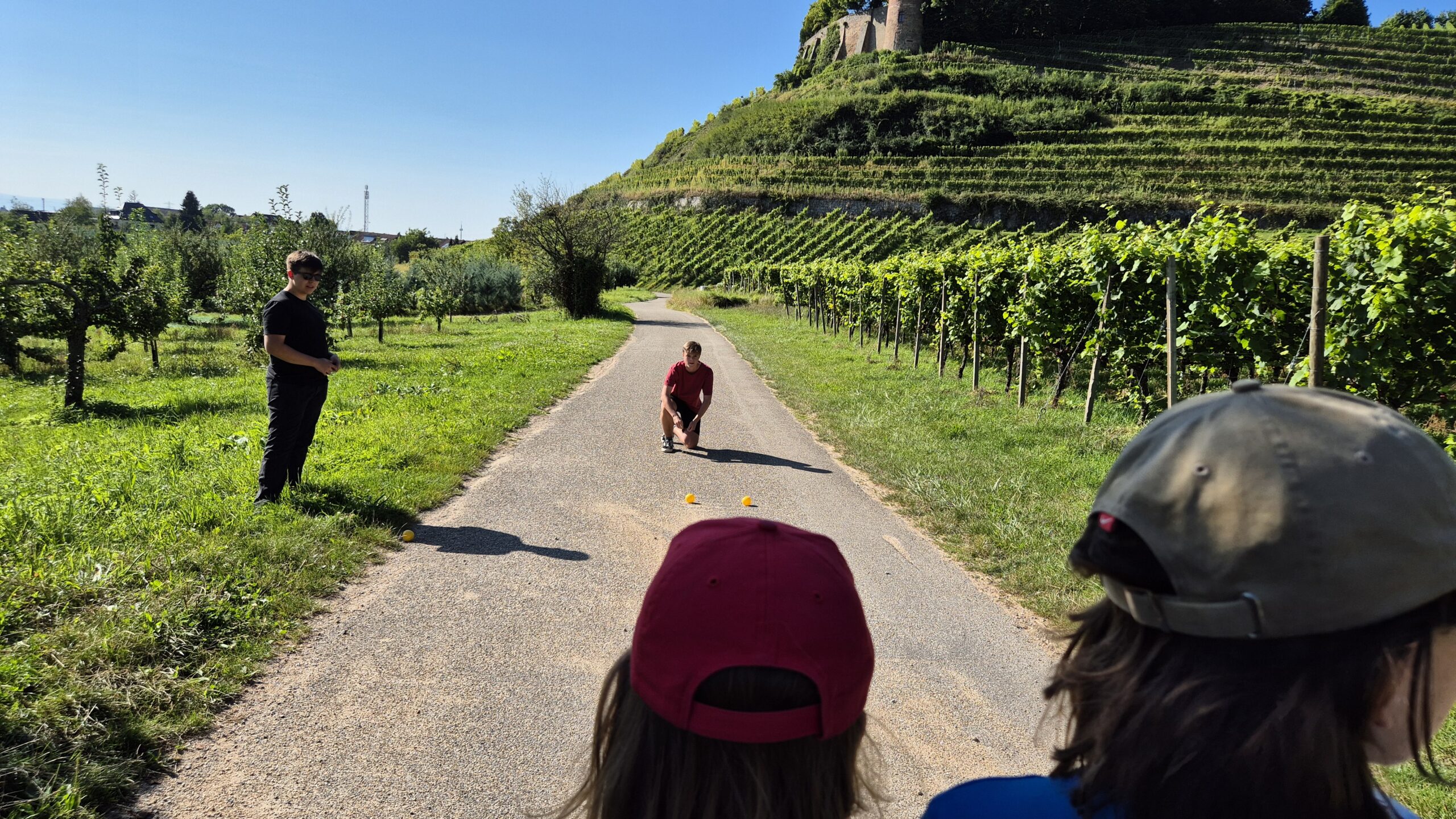 Am frühen Nachmittag kehrten wir zum Bus zurück, der uns nach Fessenheim brachte, einem kleinen Ort nahe Ortenberg. Von dort aus führte uns ein kurzer Fußmarsch zum Schuckshof, wo ein Spielplatz auf uns wartete. Der Nachmittag verging wie im Flug, als wir uns in verschiedenen Spielen maßen und die frische Luft genossen.